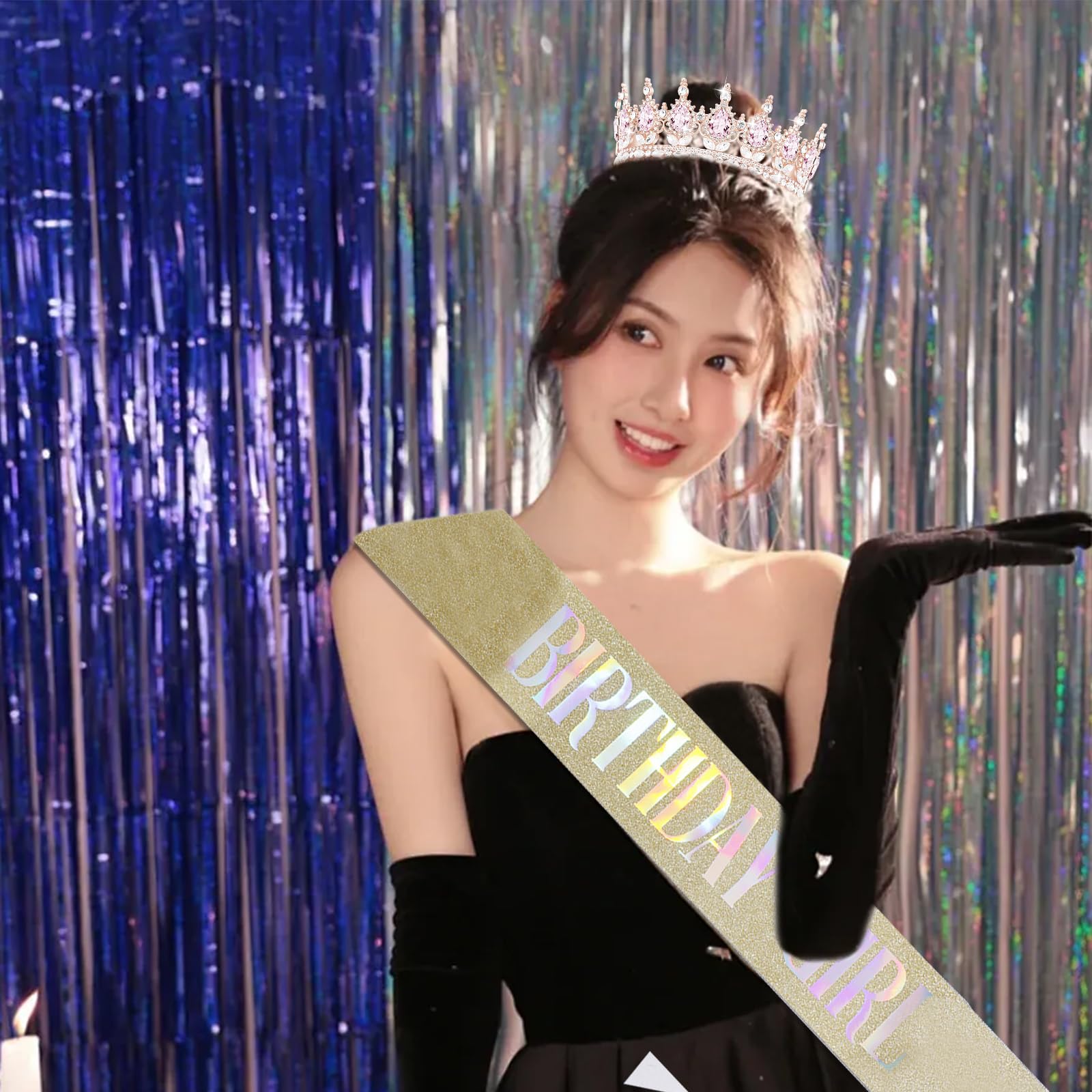 Comfortable to Wear: Our birthday crown and sash literally fits everyone! The birthday sash made from glitter fabric using hot pressed stamping foil does not tear or wrinkle easily, It looks good on any outfit and durable enough to last day into night