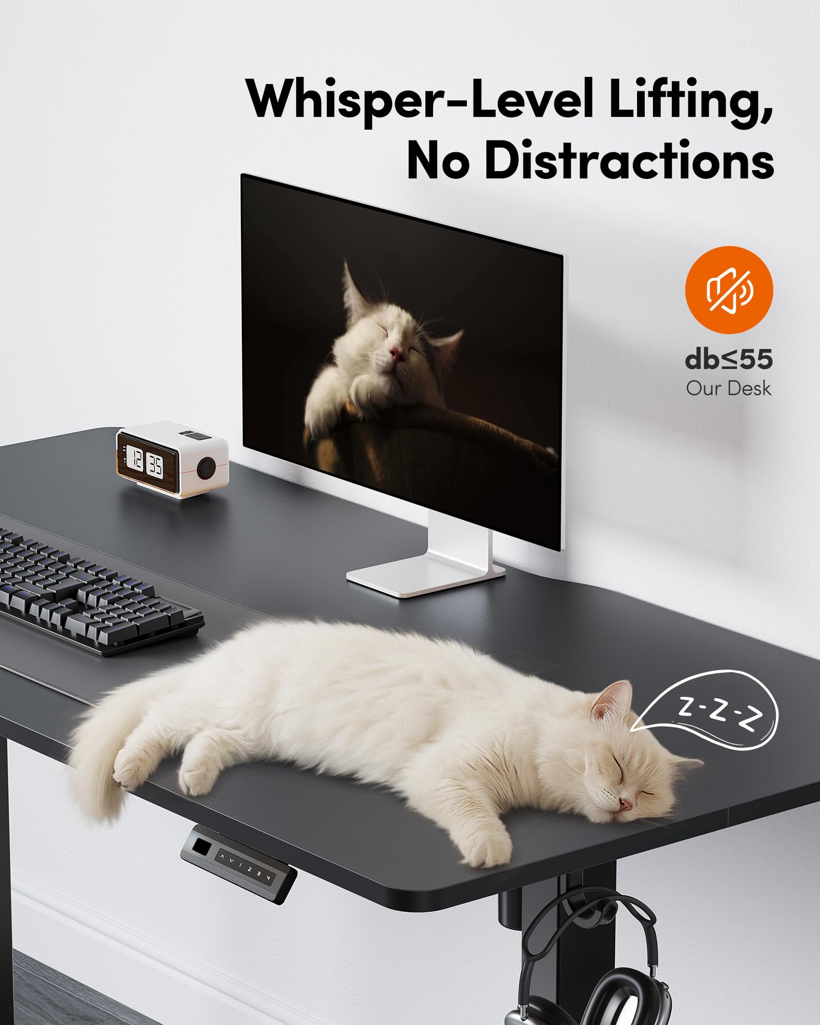 Electric Height Adjustable Lifting System: FEZIBO standing desk has reliable motor that could support height adjustment between 27.3''-45.5'' with low noise(under 50 dB) while running