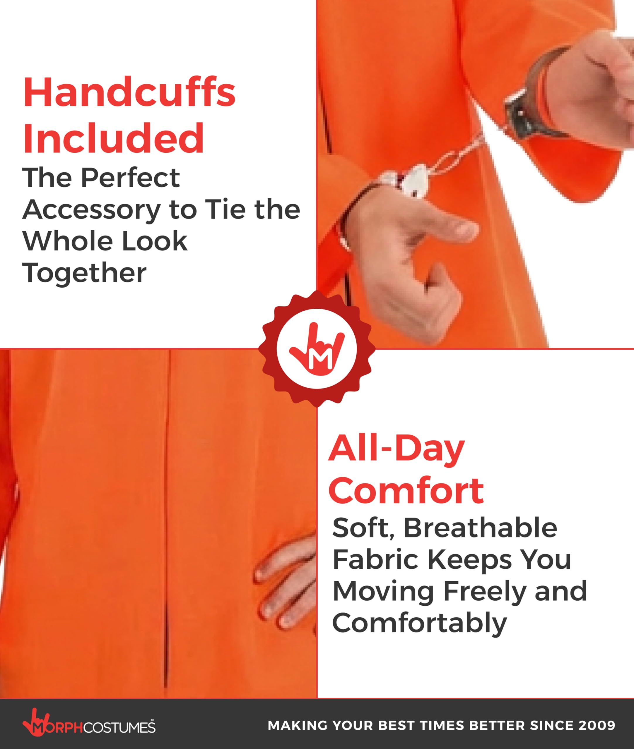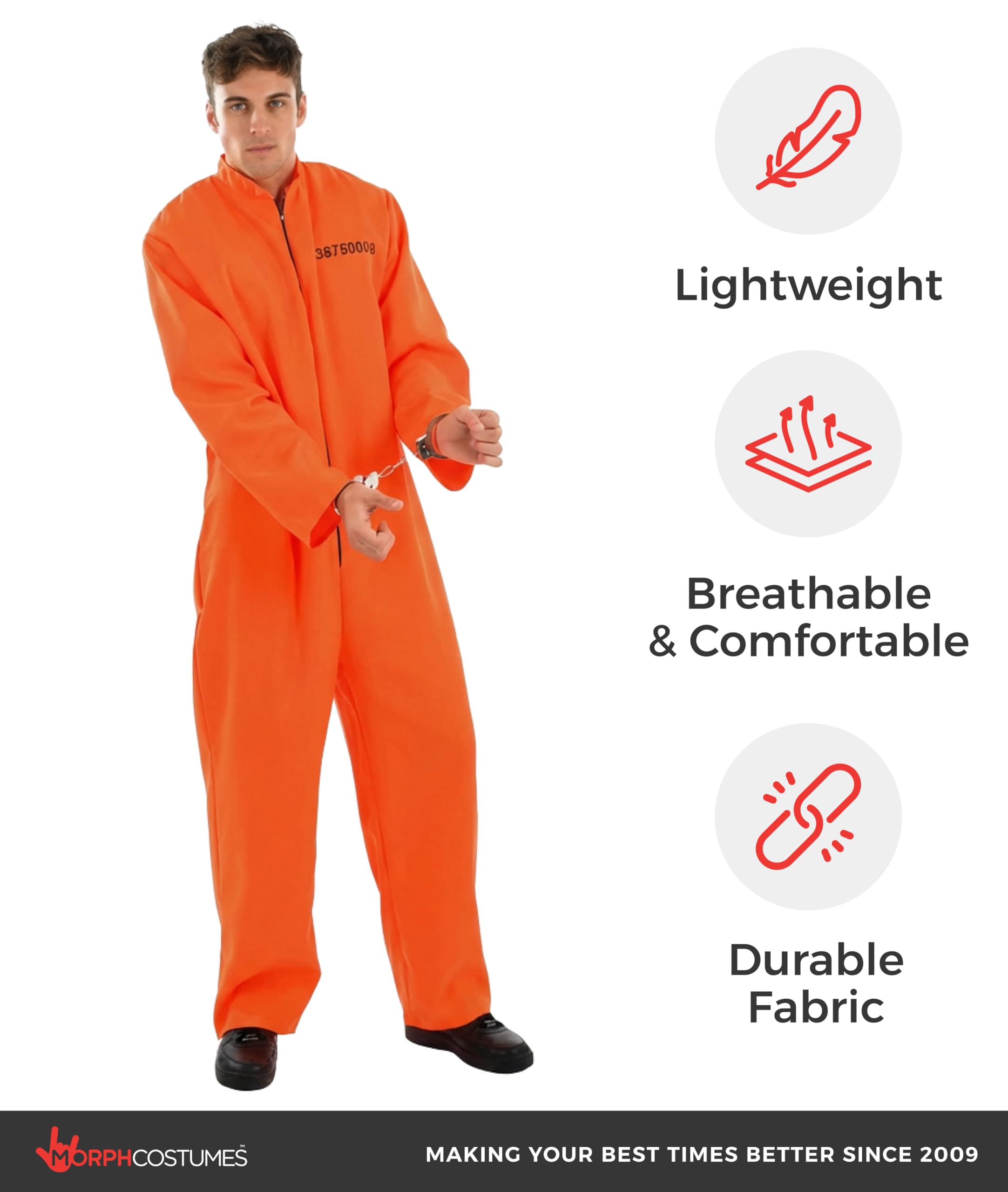 Easy to wear, durable and high quality costume including handcuffs.