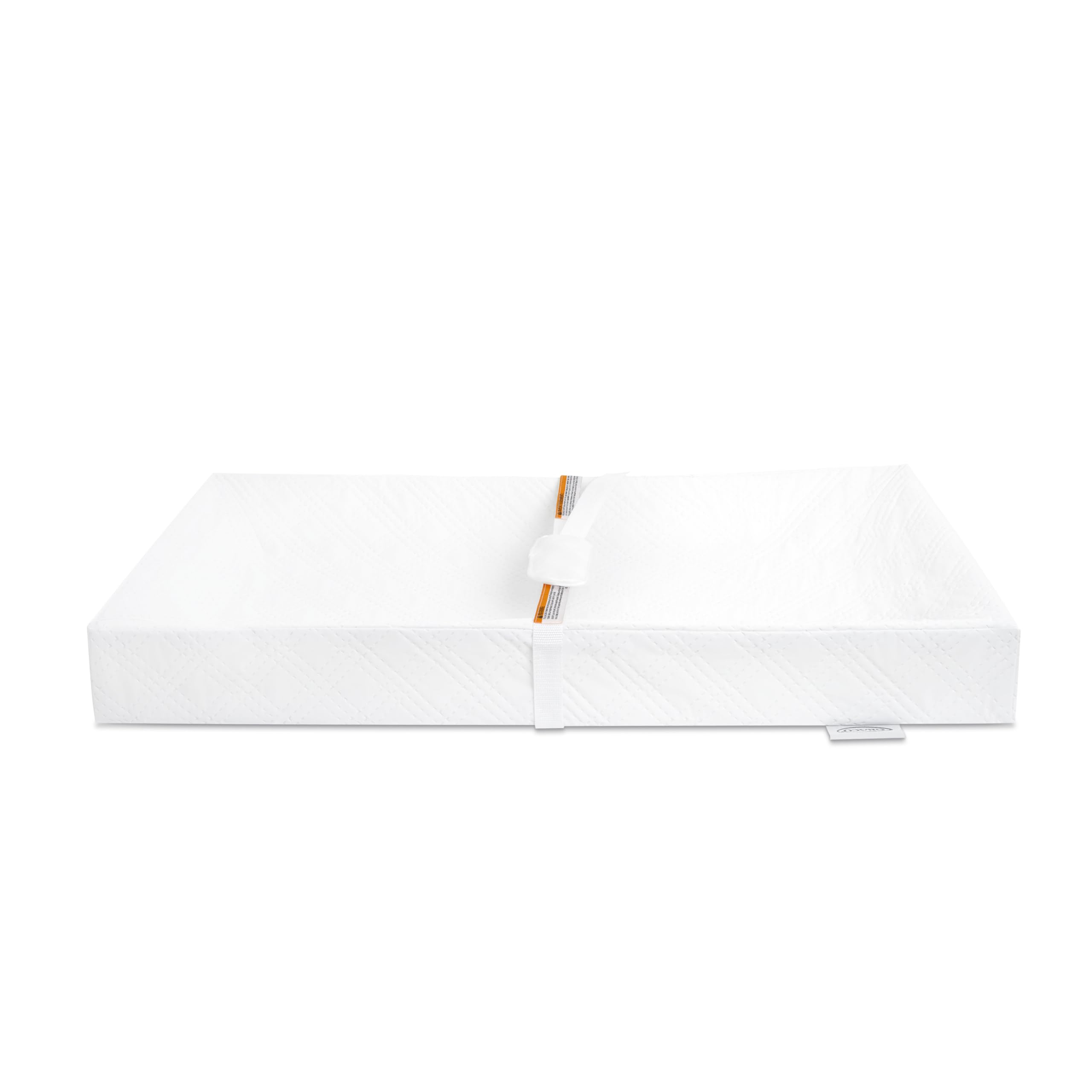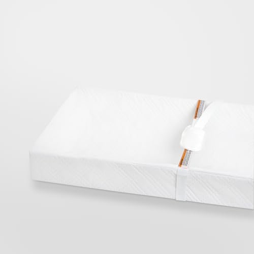 WATER-RESISTANT, EASY-TO-WIPE SURFACE: This diaper changing pad is made of a PVC-free, easy-to-wipe, easy-to-clean PEVA material that is water-resistant and durable; it includes a non-skid bottom and 2 straps to help secure it to your changing surface.