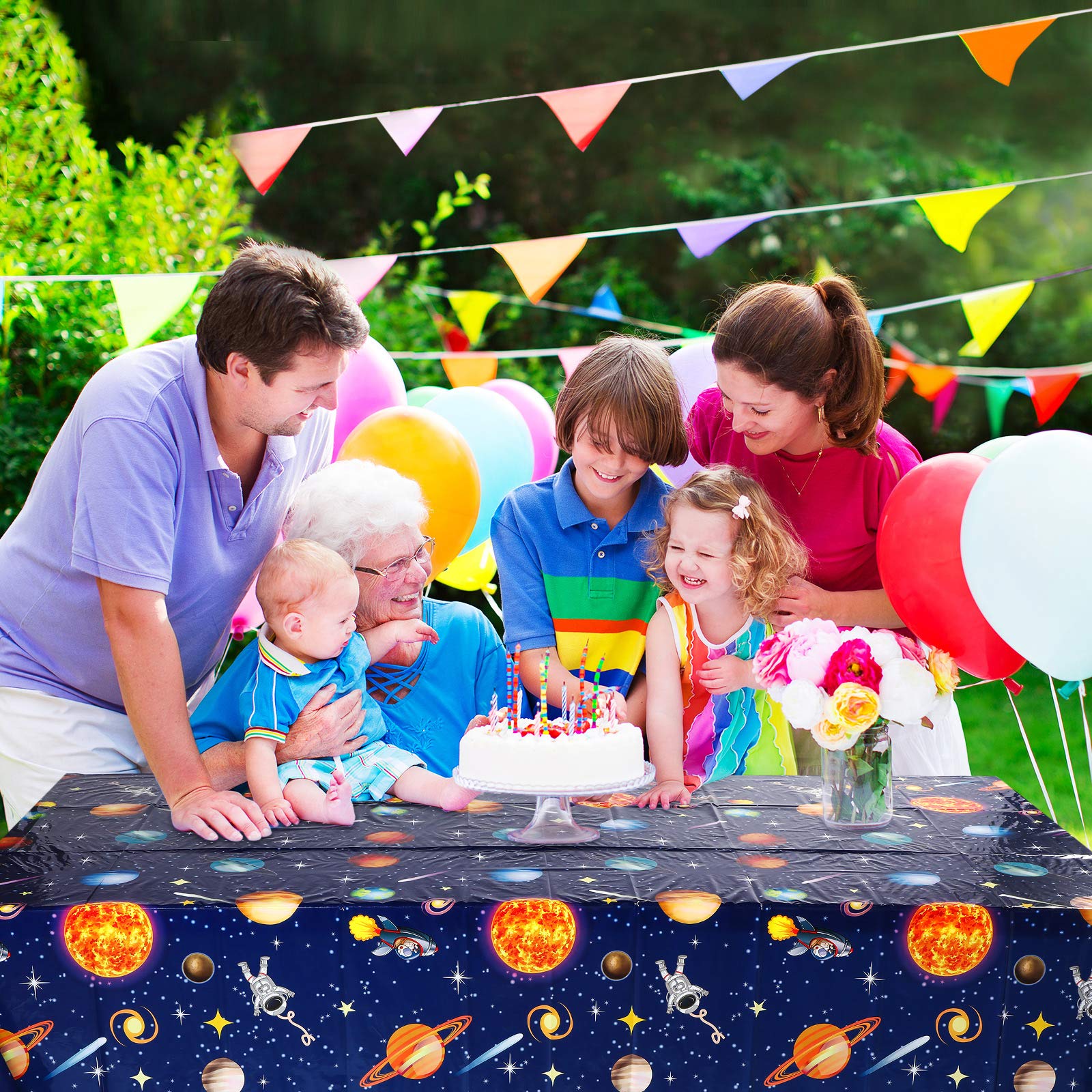 Extra large size: space party tablecloth measures approx. 54 x 108 inches/ 137 x 274 cm, suitable for 8 feet long tables, which could accommodate for 8-10 people, large enough for kids boys solar system space theme birthday party supplies