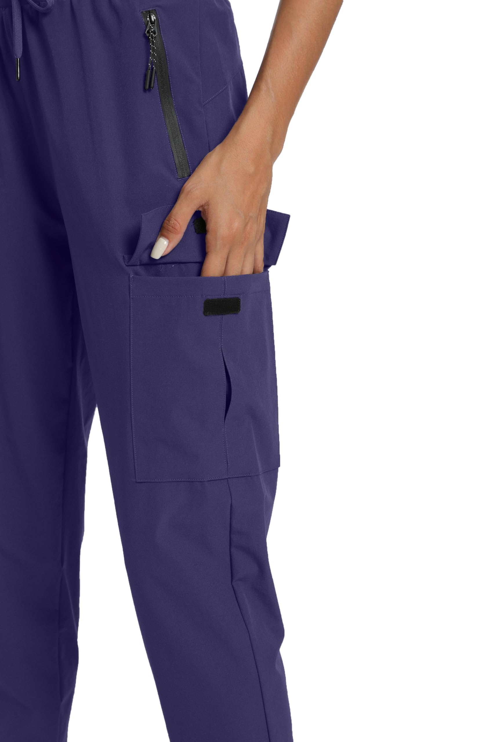 Versatile Pockets: These Women's Hiking Pants with Four Pockets, Including Two roomy Zippered Pockets and Two large hook-and-loop side pockets. The Deep Side Zippered Pocket Is Ideal for Safely Storing Your Essentials When You're Go