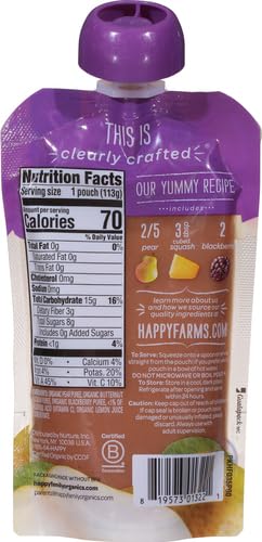 Each delicious serving of Happy Baby Clearly Crafted Stage 2 includes 100% daily value of Vitamin A and 3g of fiber.