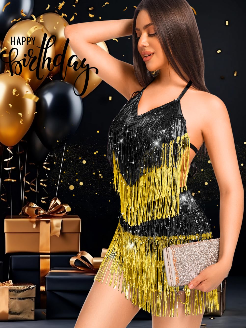 【Feature】Halter / Sleeveless / Backless / Mini / Tiered Fringe
