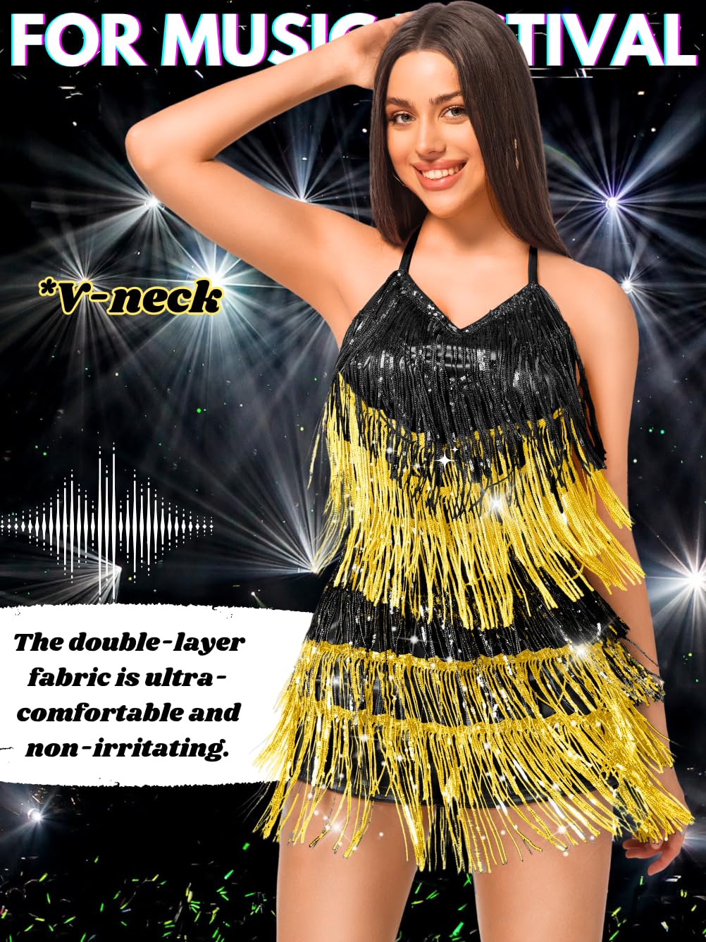 【Don't Miss】It's a vibrant and playful outfit with sparkle for all your festival needs.