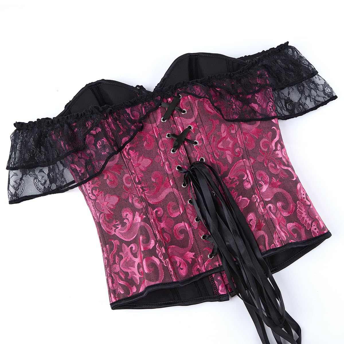 Description SHYMMUO Corset Top for Women Renaissance Steampunk Bustier Top Sexy Lace Up Corset Top Festival Pirate Halloween Costume Turn heads and shape curves in this stunning off-shoulder corset top for women. Made from elegant satin jacquard fabric with intricate vintage-inspired patterns, this lace-up bustier combines timeless style with modern comfort. Featuring off-the-shoulder lace sleeves, a front busk closure, and an adjustable lace-up back, this structured steampunk corset top is both fashionable and functional. Whether you're dressing up for a renaissance festival, a burlesque show, a gothic party, or need a bold corset costume for Halloween, this piece is a versatile addition to any corset lover’s wardrobe. With built-in supportive steel boning, this sexy lingerie top enhances your natural curves while offering waist-slimming definition. Pair it with a flowing skirt, leather pants, or layered under a jacket to create countless striking looks. This vintage corset top is more than just shapewear—it’s a style statement. Please choose corset according to your waist and bust size Size Chart X-Small Corset Fit Waist: 23-25" , Bust: 30-32" Small Corset Fit Waist: 25-27" , Bust: 32-34" Medium Corset Fit Waist: 27-29" , Bust: 34-36" Large Corset Fit Waist: 29-31" , Bust: 36-38" X-Large Corset Fit Waist: 31-33" , Bust: 38-40" XX-Large Corset Fit Waist: 33-35" , Bust: 40-42" 3X-Large Corset Fit Waist: 35-37" , Bust: 42-44" 4X-Large Corset Fit Waist: 37-39" , Bust: 44-46" 5X-Large Corset Fit Waist: 39-41" , Bust: 46-48"