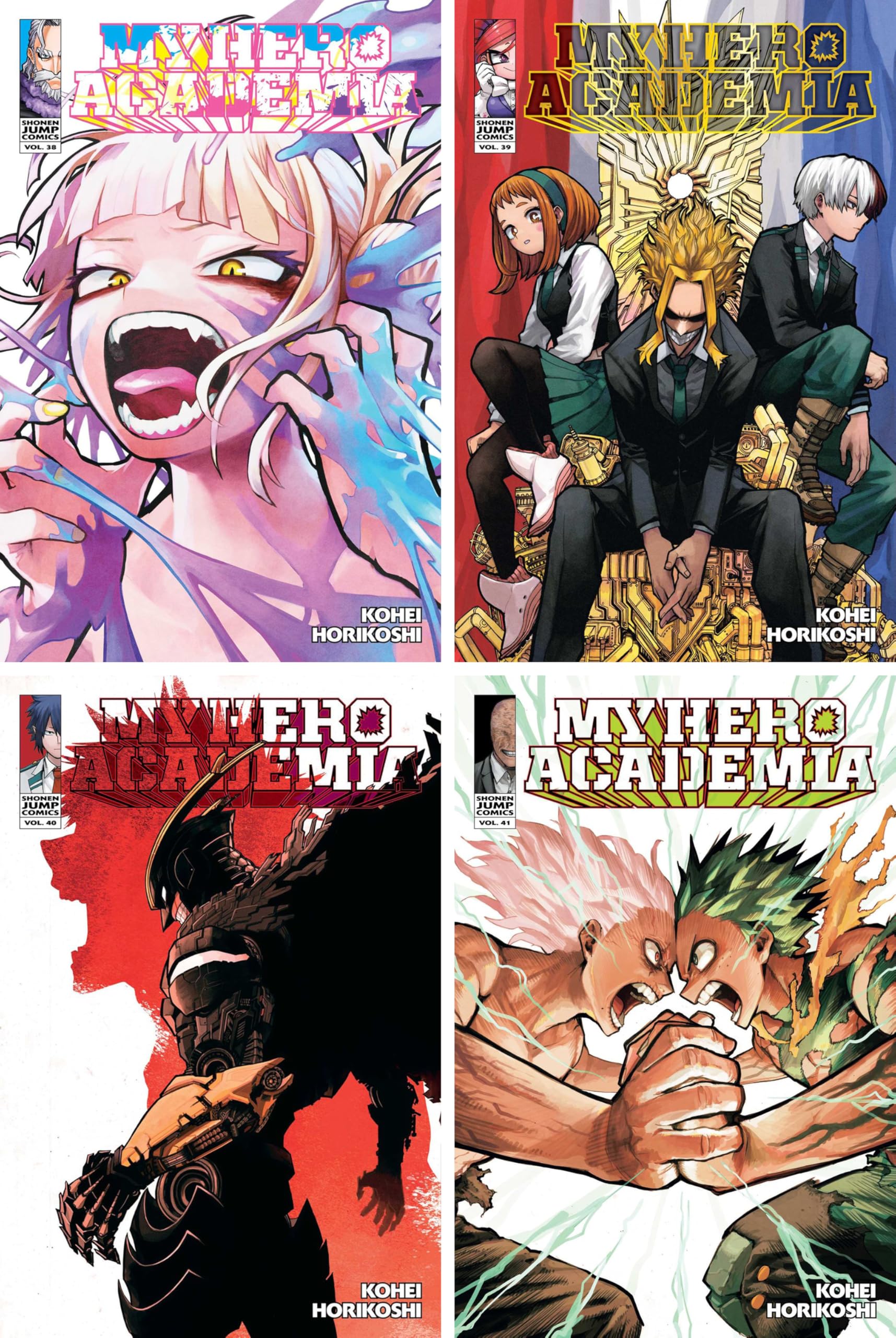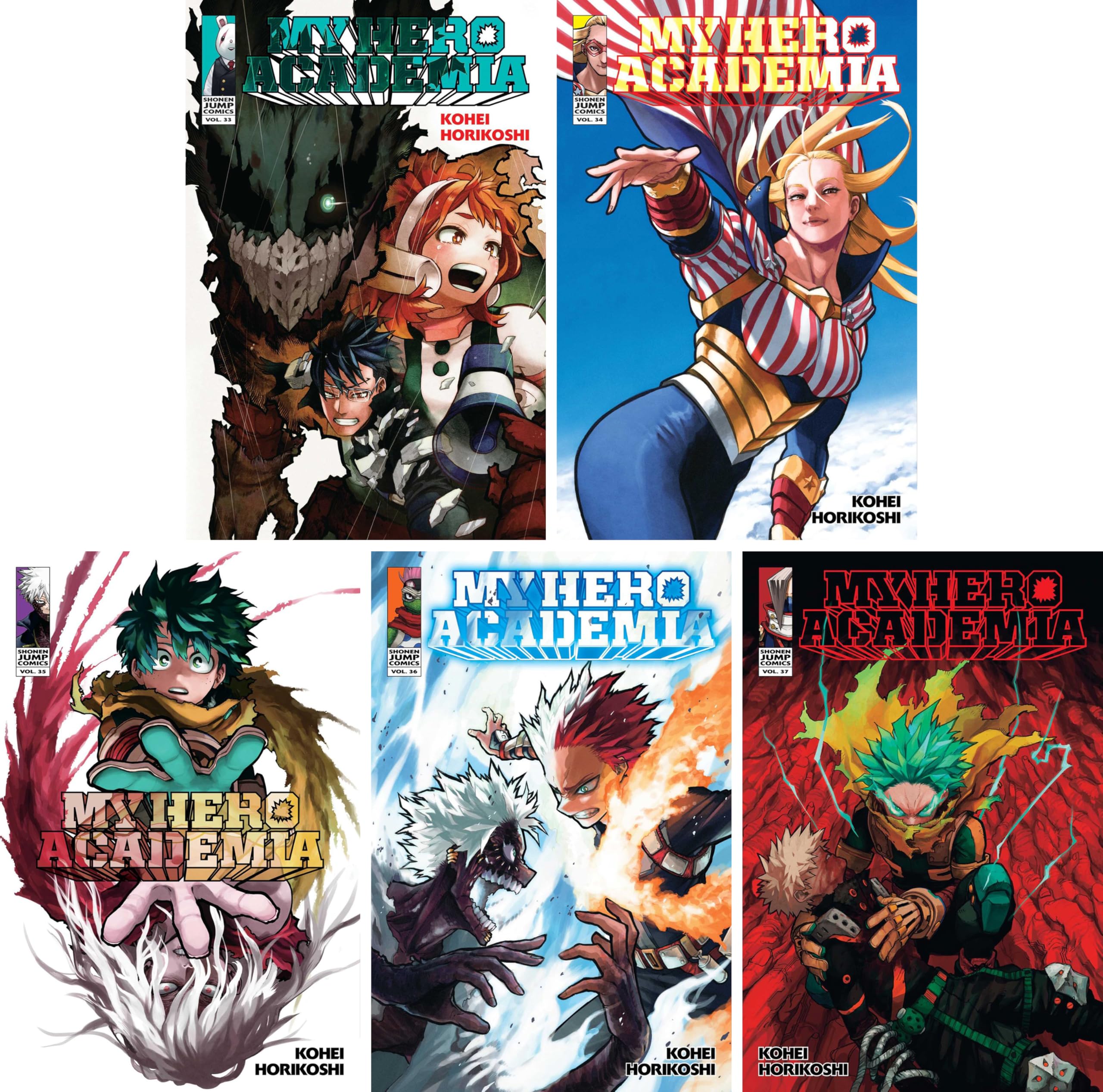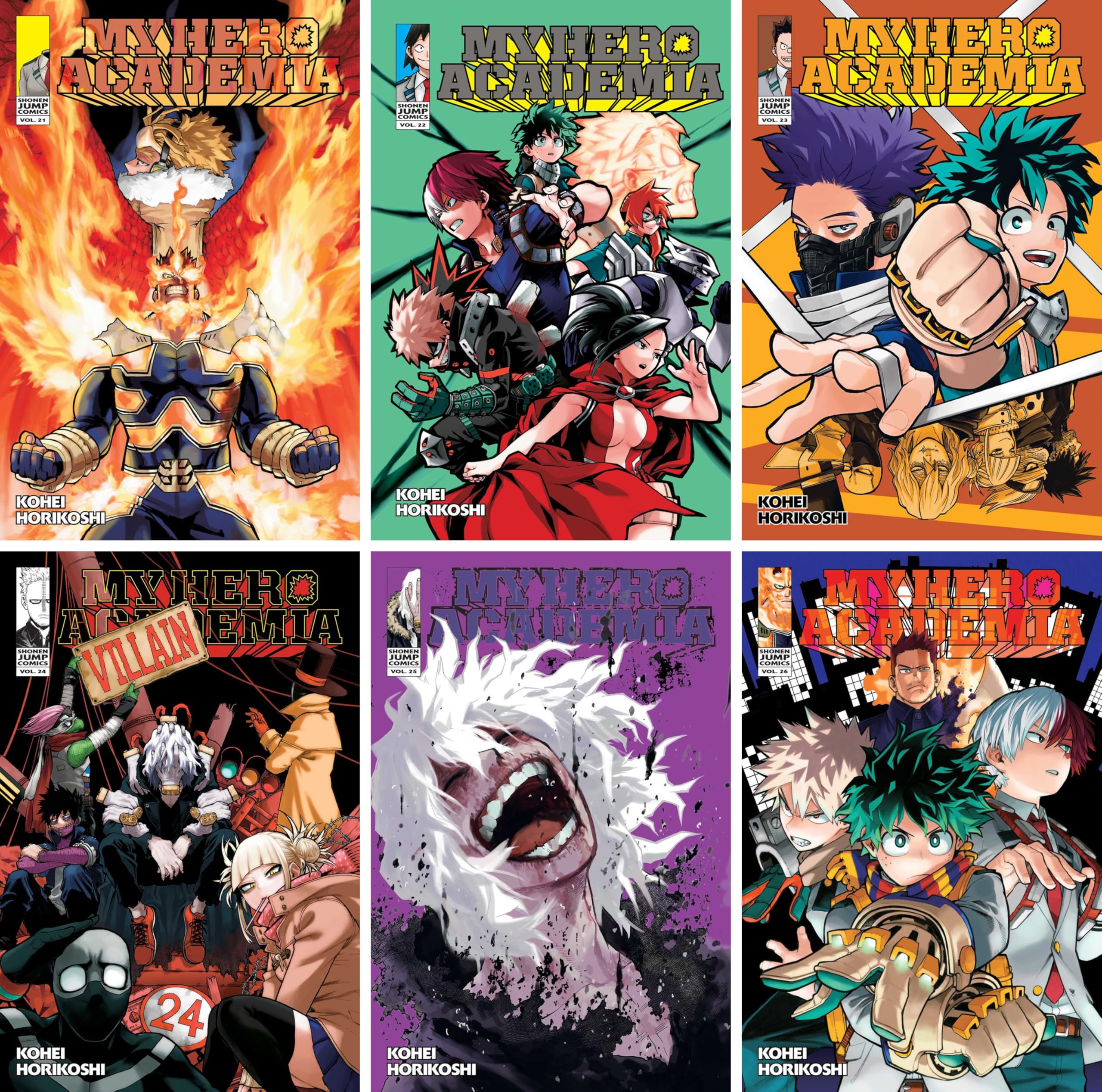 Continue the thrilling adventure of My Hero Academia in this collection of Volumes 21-42: Volume 21 (9781974709502) Volume 22 (9781974709656) Volume 23 (9781974709663) Volume 24 (9781974711208) Volume 25 (9781974717620) Volume 26 (9781974719778) Volume 27 (9781974721016) Volume 28 (9781974722884) Volume 29 (9781974725106) Volume 30 (9781974727155) Volume 31 (9781974732128) Volume 32 (9781974732364) Volume 33 (9781974734740) Volume 34 (9781974736638) Volume 35 (9781974739097) Volume 36 (9781974741083) Volume 37 (9781974743247) Volume 38 (9781974745845) Volume 39 (9781974749645) Volume 40 (9781974752737) Volume 41 (9781974755882) Volume 42 (9781974759187)