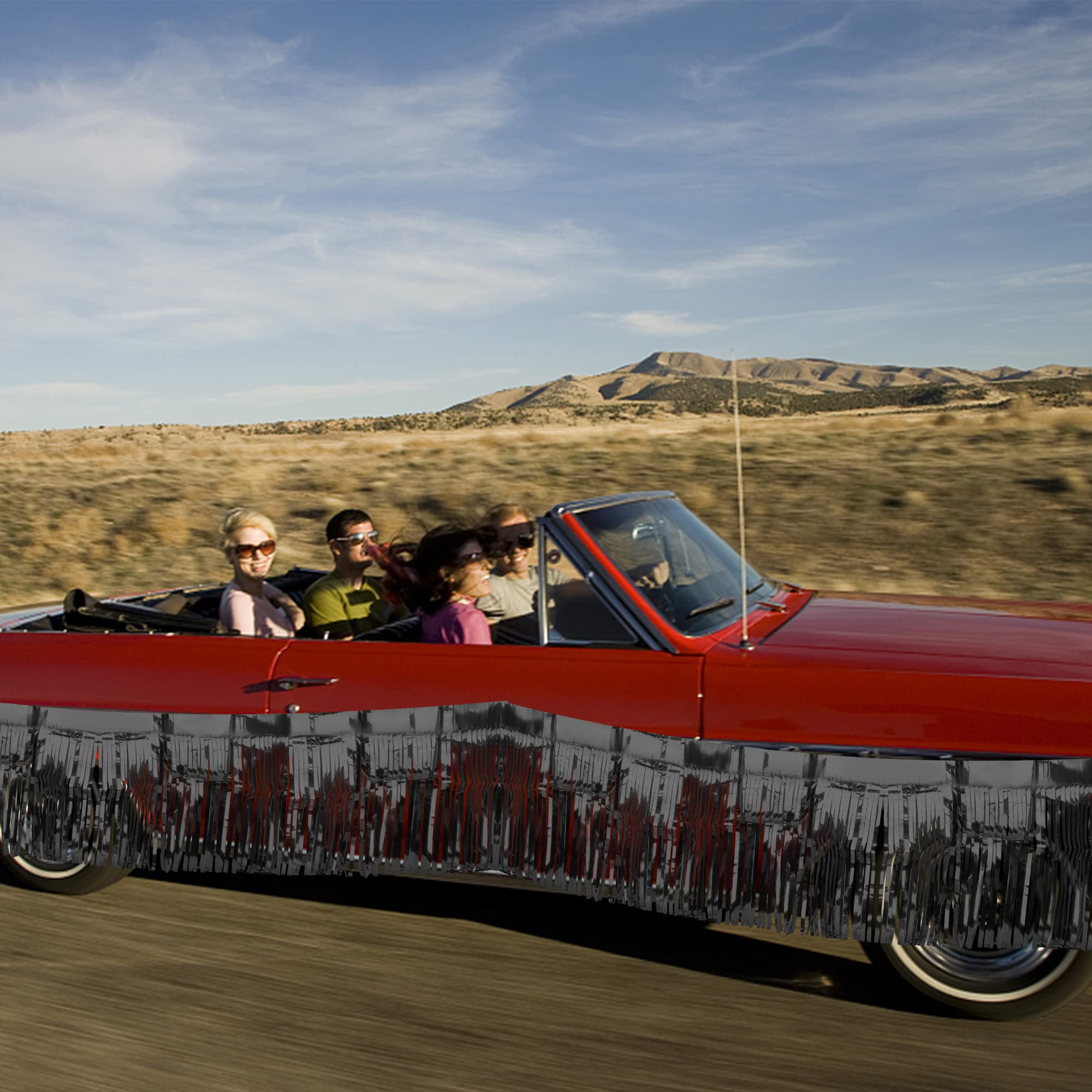 【FESTIVE AND FUN】Metallic foil fringe garland has double stick tape at the back for easy mounting and removing. Strong adhesion but not too strong to rip off car/wall paint, this parade float will not be blown away by the wind, they can stay hanging for days. PET material, lightweight, the metallic foil finish makes the float fringe reflective and looks more shiny and glittery in the light. Very attractive, perfect for car decoration, graduation floats, holiday parades, etc.