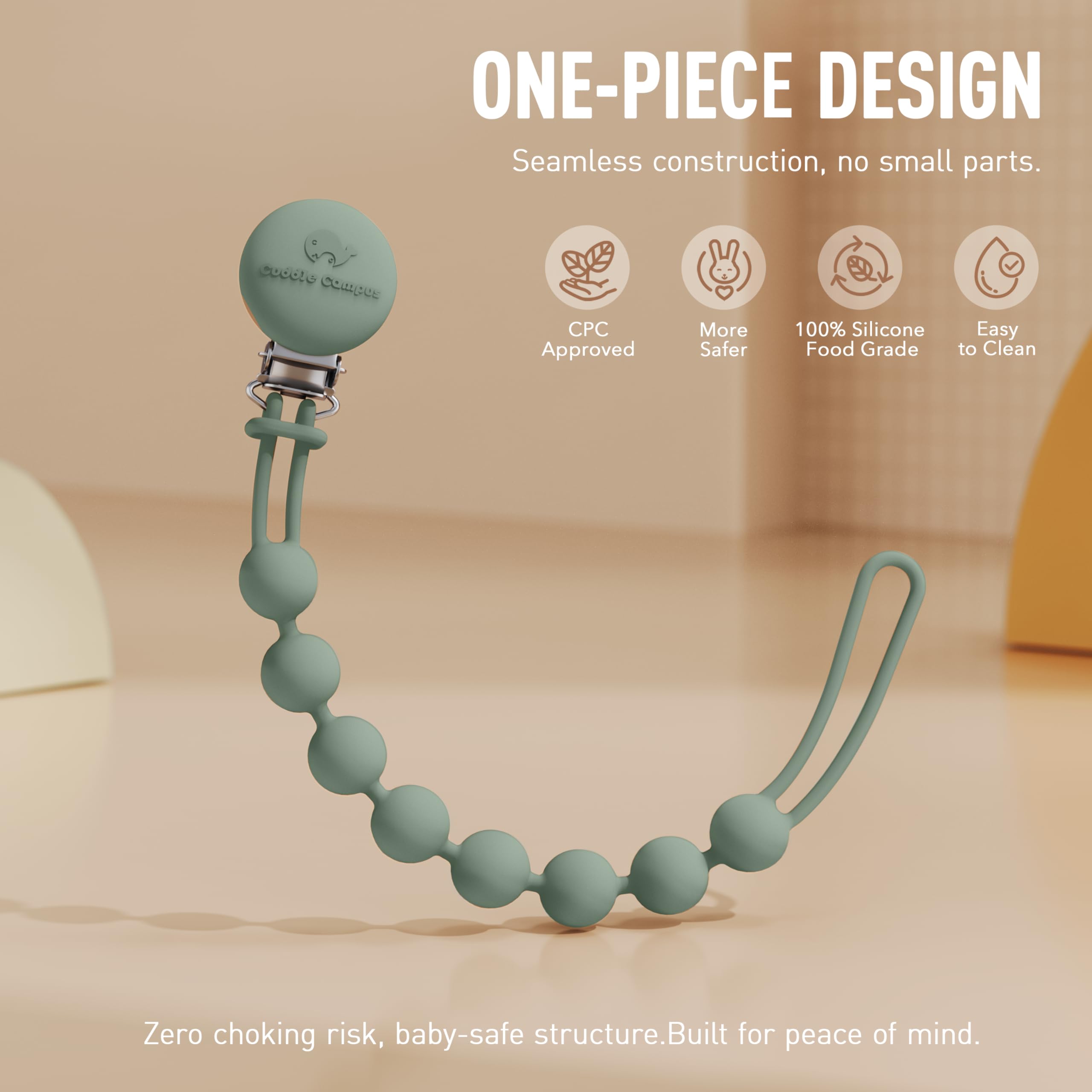 UNIQUE ONE PIECE DESIGN: We’ve taken our popular pacifier holder to the next level by updating it with a one-piece silicone core. No more worrying about parts falling apart—this seamless design stays sturdy, and best of all, it eliminates any choking hazard, keeping your little one safe