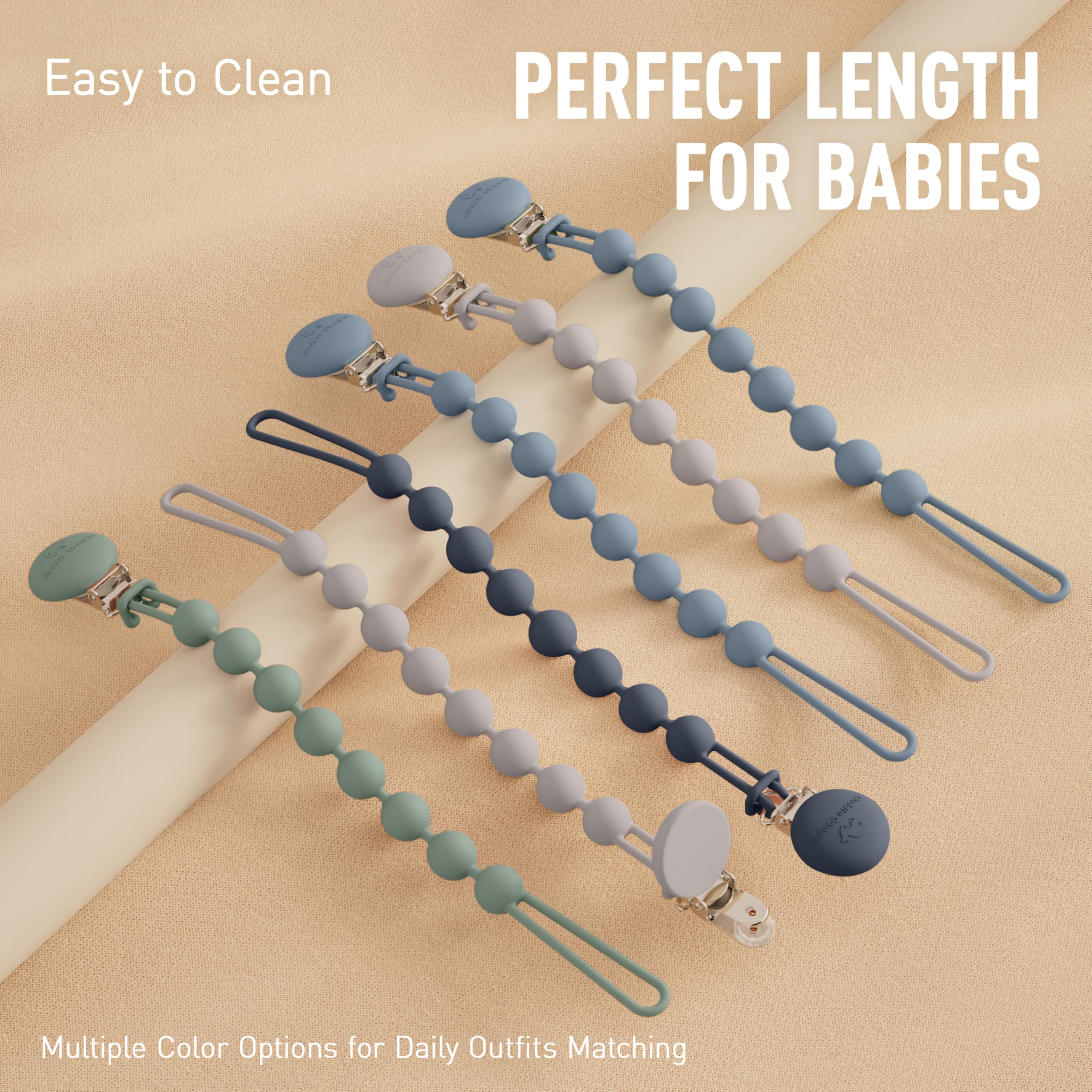 IDEAL PACIFIER CLIP: Our silicone pacifier clip comes in neutral colors (suitable for boys and girls) and works well to keep pacifiers clean—ideal for new moms. It’s compact and lightweight, attaching easily to baby’s clothes and fitting into bags or pockets. Whether you’re running errands, traveling, or out for walks, it keeps pacifiers within reach, prevents loss, and keeps them clean