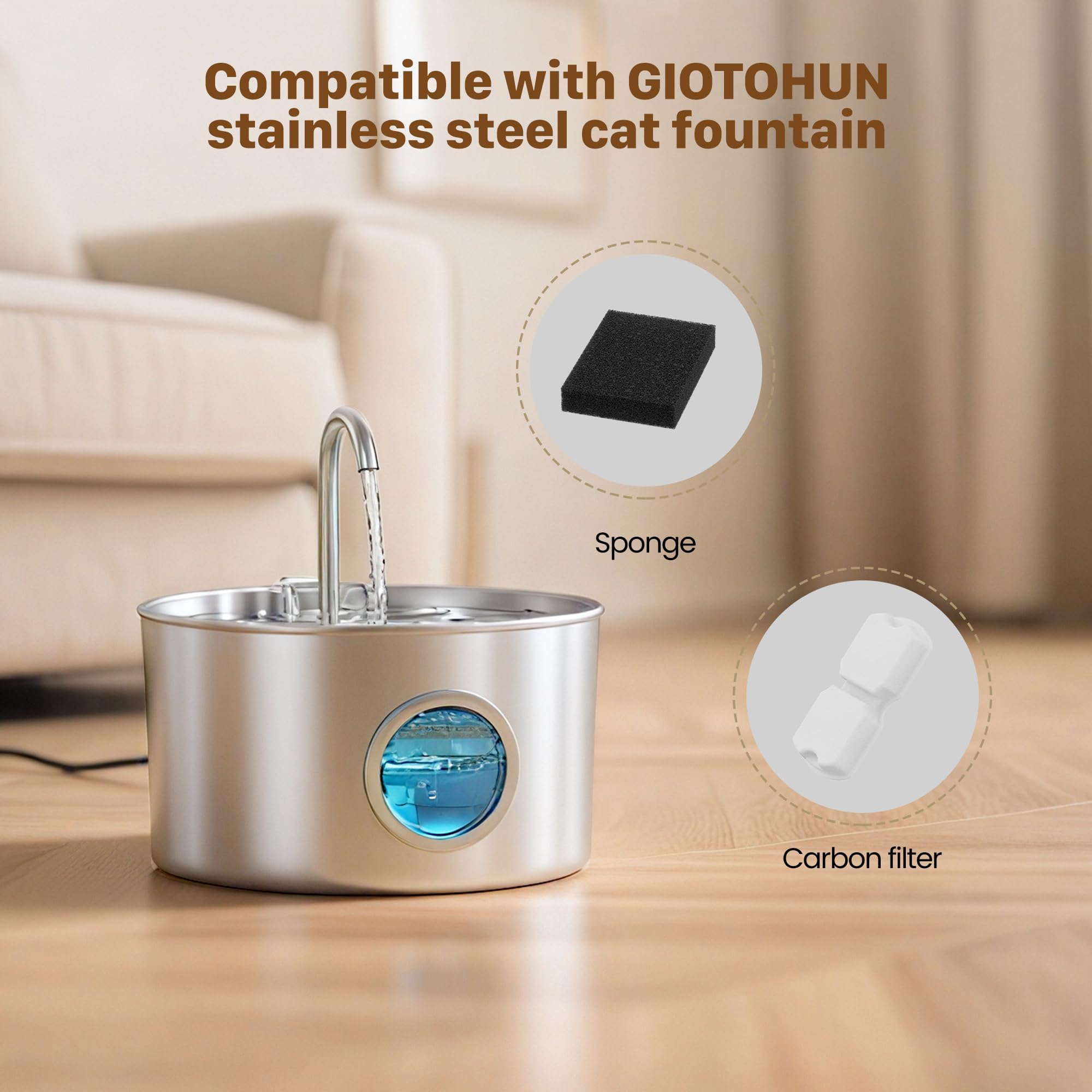 【Correct match】This filter is matched with GIOTOHUN 2.2L/3.2 L stainless steel cat water dispenser