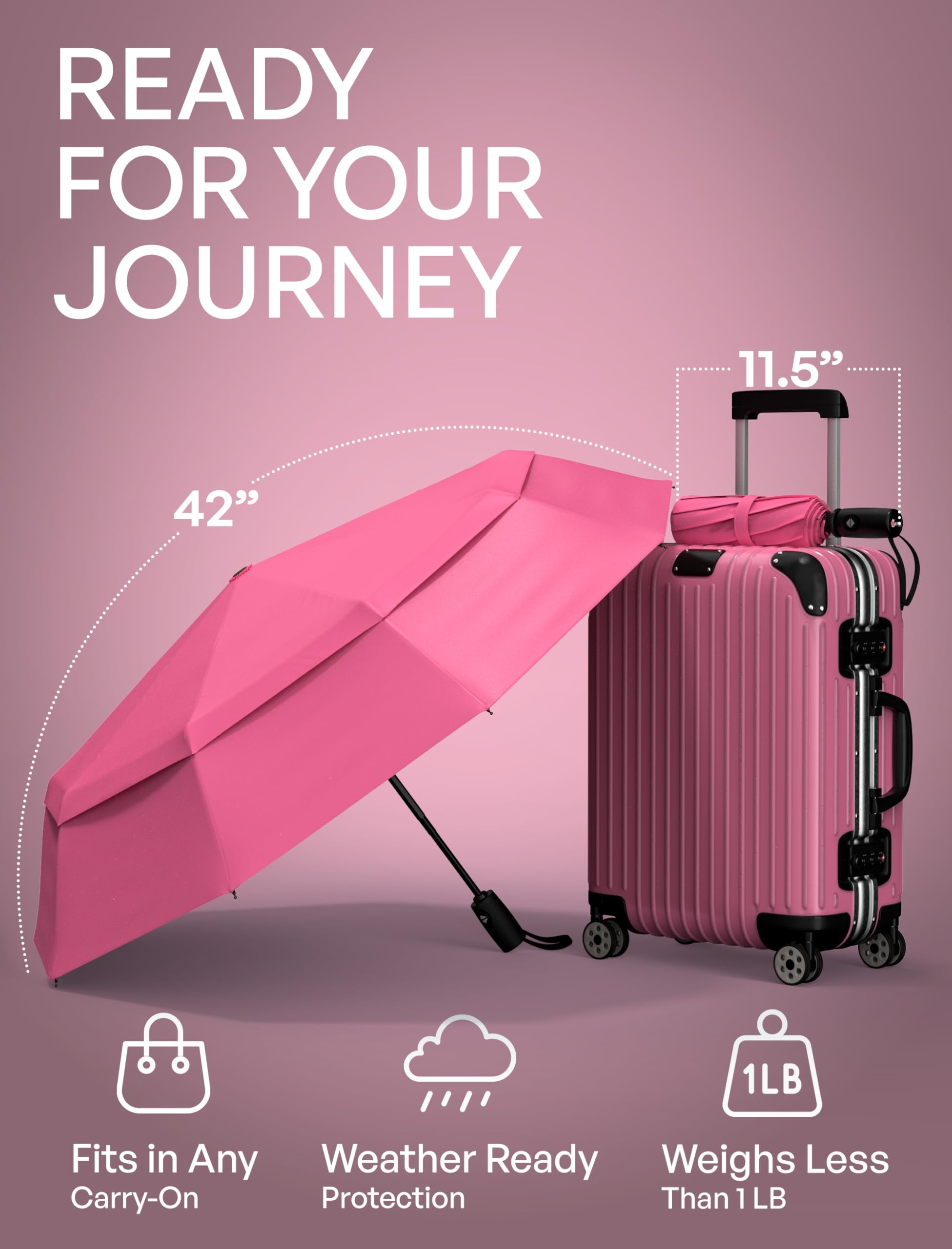 LIGHTWEIGHT & PORTABLE FOR EASE: Weighing under 1.1lb, this foldable umbrella is retractable for everyday carry yet strong for heavy duty use. Folding to 11 inches, it stores in luggage, handbags, or glove compartments while expanding wide to shield from rain. A reliable choice for students and adult commuters while traveling, whether you're camping with your kid in the summer heat, or hiking on in Europe with unpredictable weather. Must have college dorm room essentials for any student.