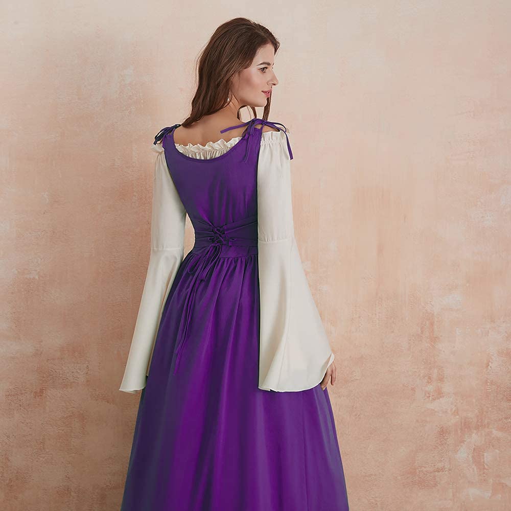 Style: Long Flare Sleeve, Floor Length, Off Shoulder, Elastic Waist, Comfortable, Medieval Long Dress for Women, Vintage Masquerade Party Dress
