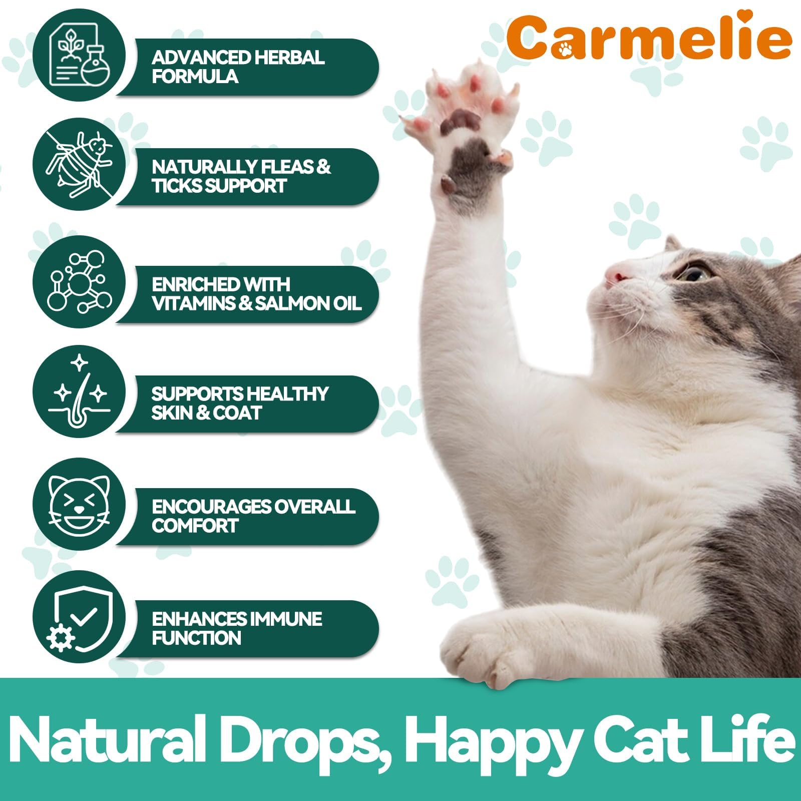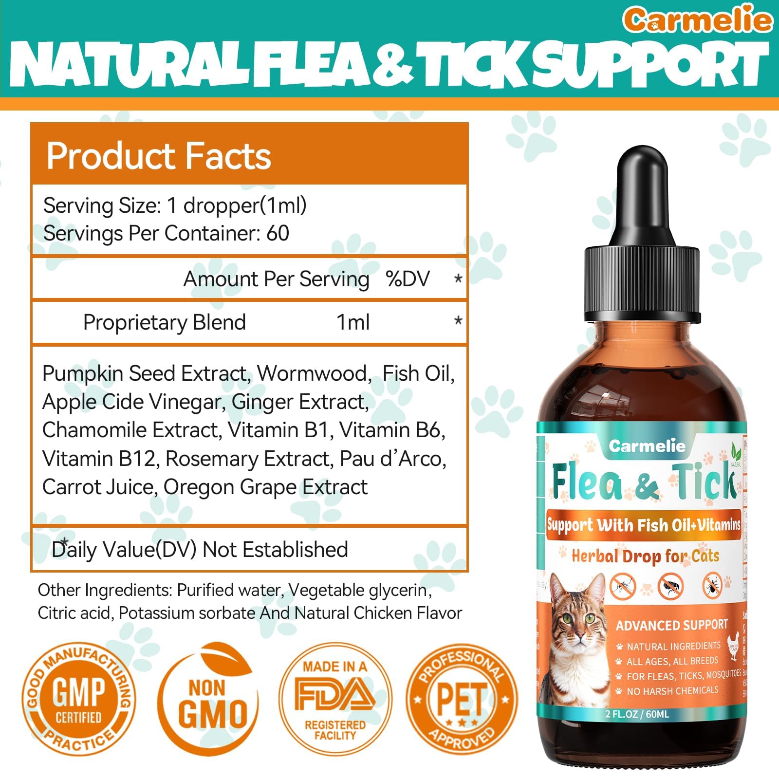 Gentle Natural Flea and Tick Support: Our natural drops are crafted from a blend of safe & natural ingredients such as carrot juice, pumpkin seed extract, wormwood, and apple cider vinegar. It offers a gentle way to support fleas and ticks for your feline friends of all ages and breeds.