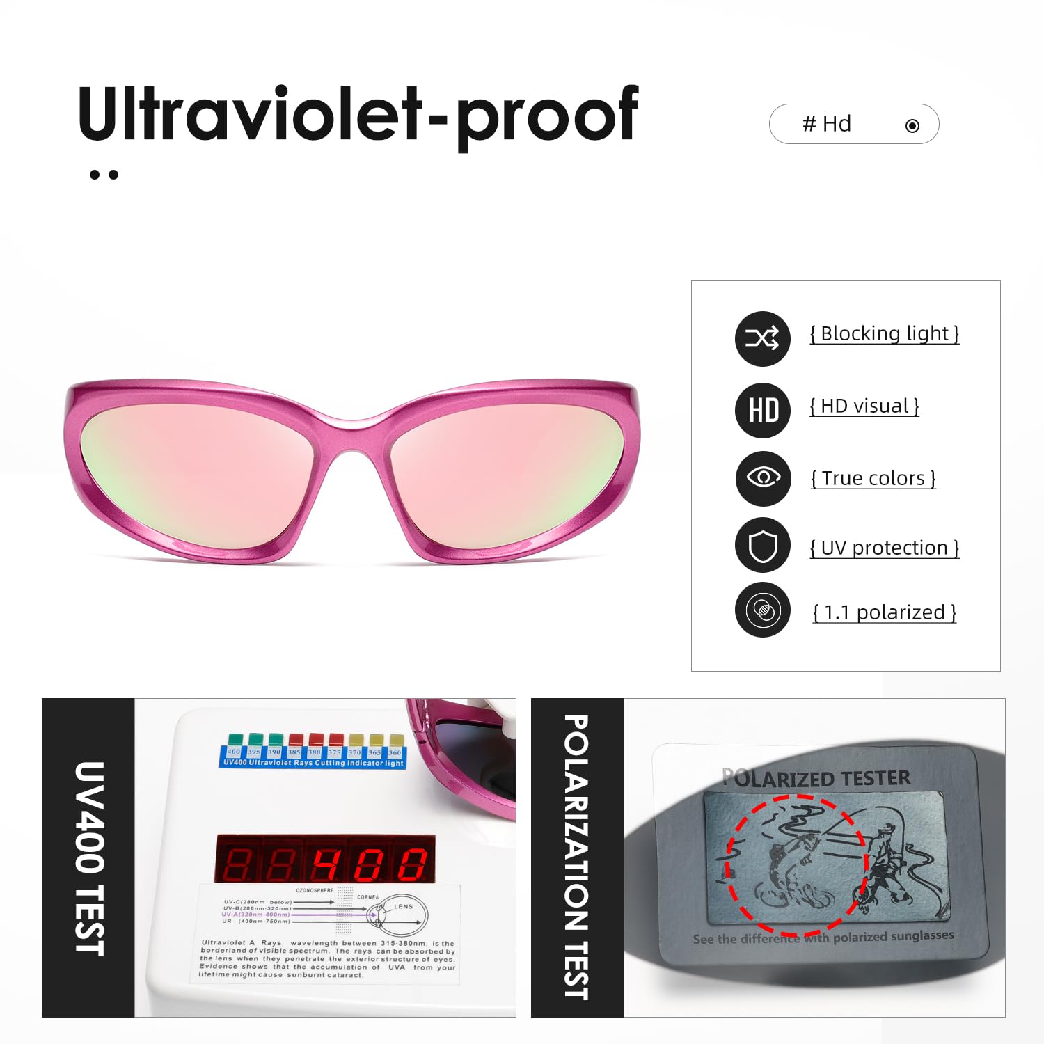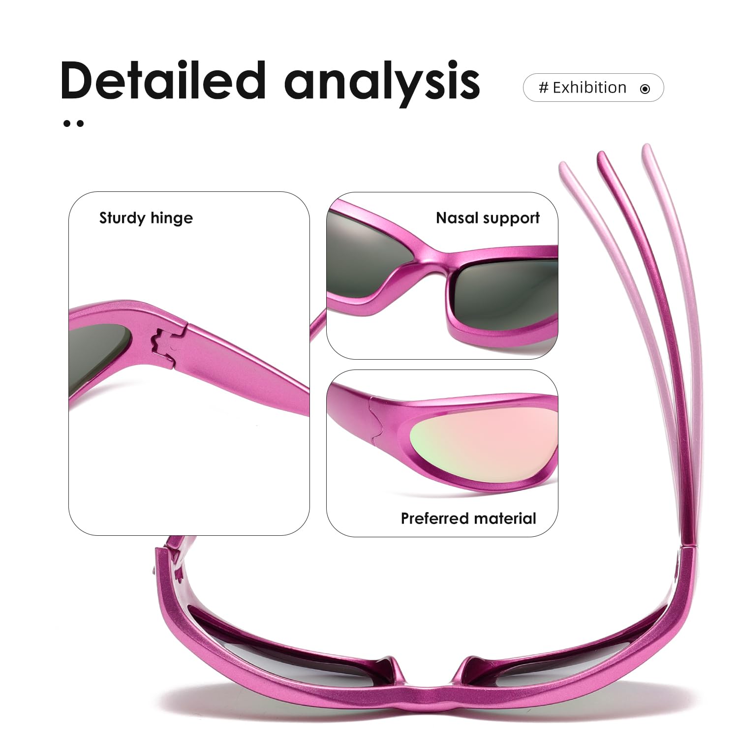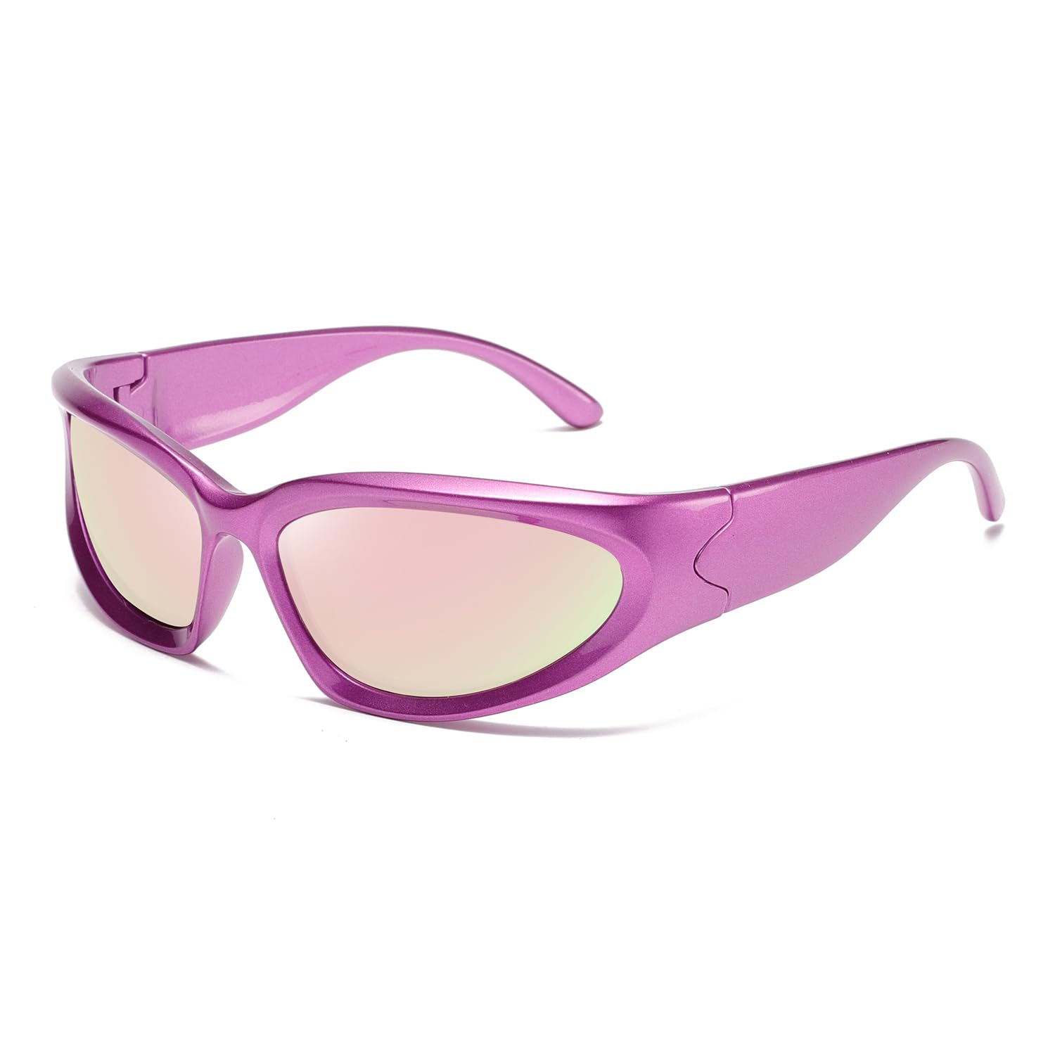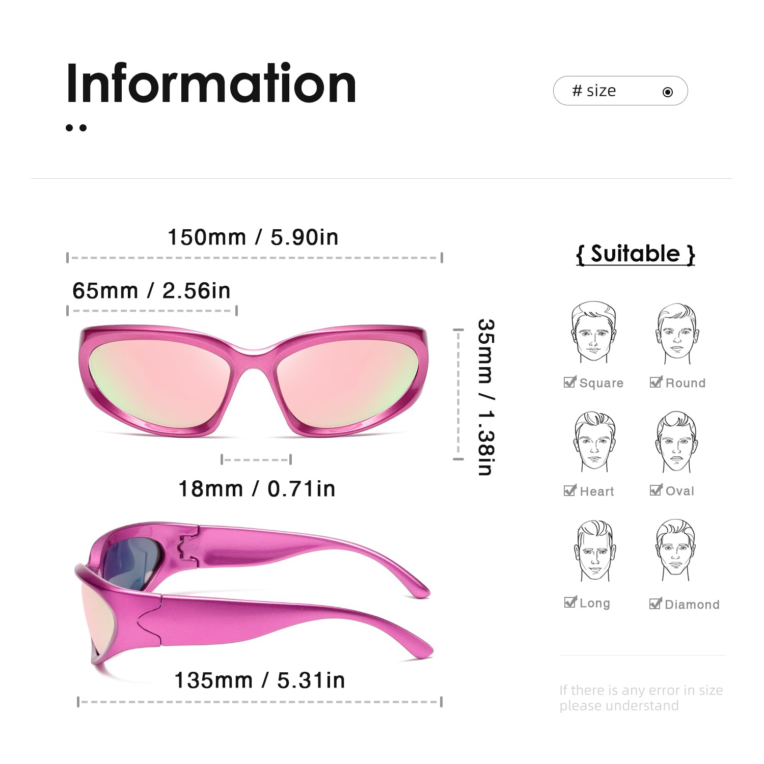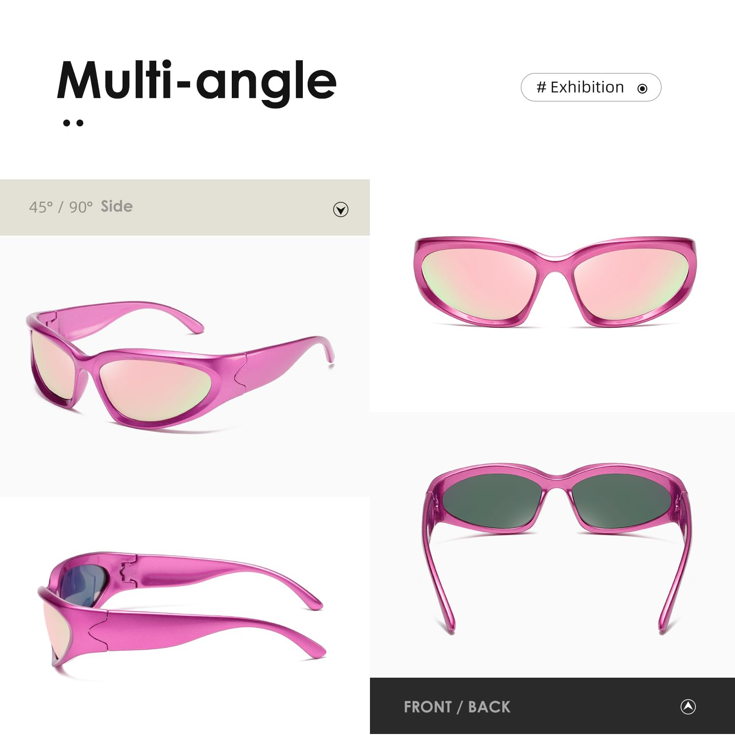 EXCLUSIVE DESIGN-We are dedicated to the development of trendy and unique sunglasses for people who pursue fashion and express their individualities,With retro wraparound eye shape,fit for all kinds of faces.