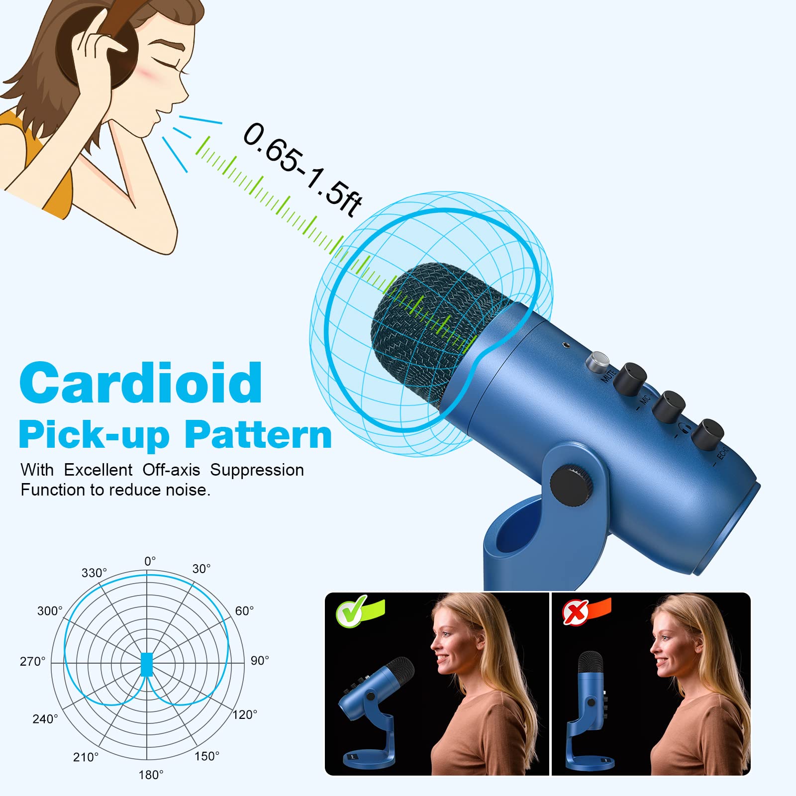 ZealSound USB Microphone,Condenser Gaming Mic for Phone/Laptop/PC/PS4/5/Computer,Microphone with Gain Knob,LED Mute,Monitor Volume Adjustment,Stand Base for Streaming, Podcast, Studio Recording (Blue)