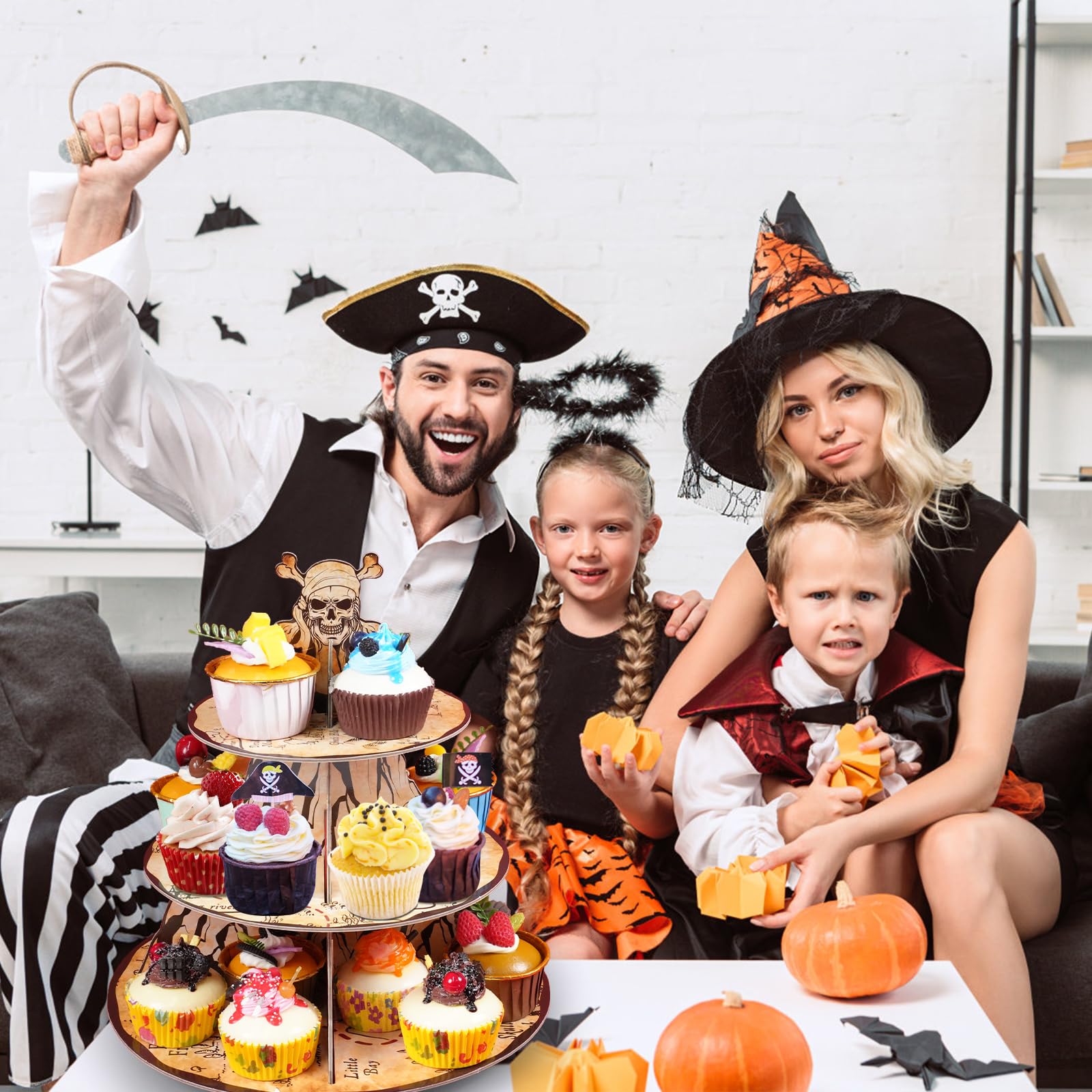 3.High Quality Material: The pirate party decorations cake stand is made of high quality thick cardboard, the patterns and colors are beautifully printed, sturdy and serviceable, not bend or break easily, can hold the cupcakes really well