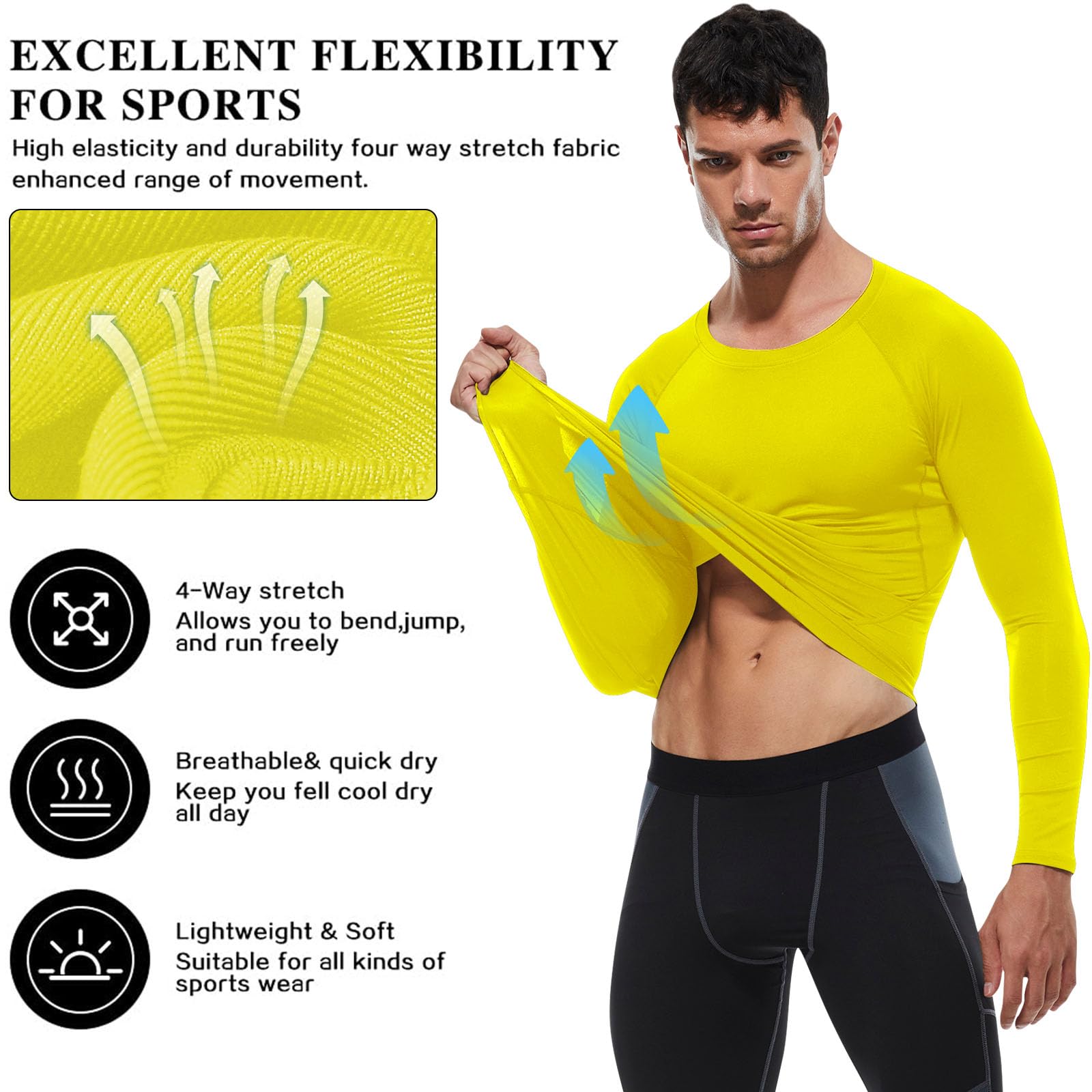 Dry-Fit Shirts for Men: Our Long sleeve compression shirt men is made of ultra soft, breathable and sweat-wicking 4-way stretch superior quality fabric, enable sweat easy for air-dry to prevent clothes sticking to the body. Excellent elasticity and durability shirts are great for all day wear