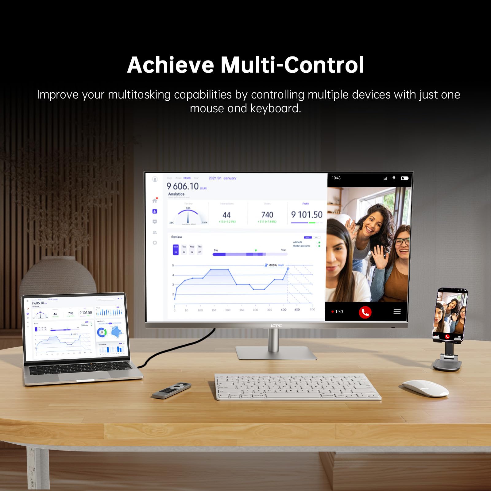 32-inch Smart Monitor: KTC 4K 60Hz smart monitor is designed for multitasking while working, playing and watching. With vivid colors and clarity, and convenient wireless features, it's easy to complete your projects efficiently.