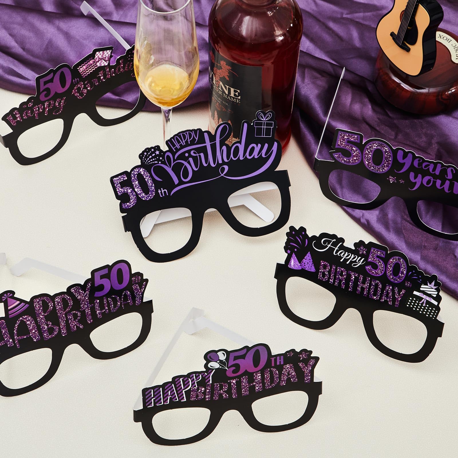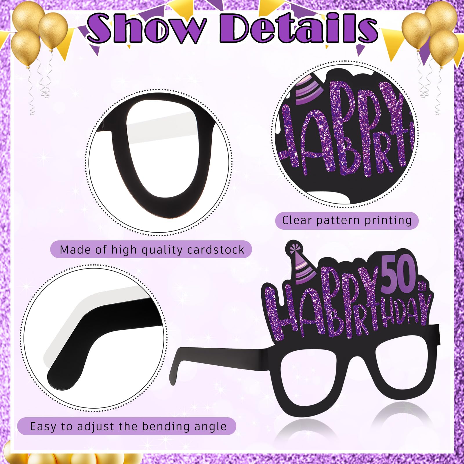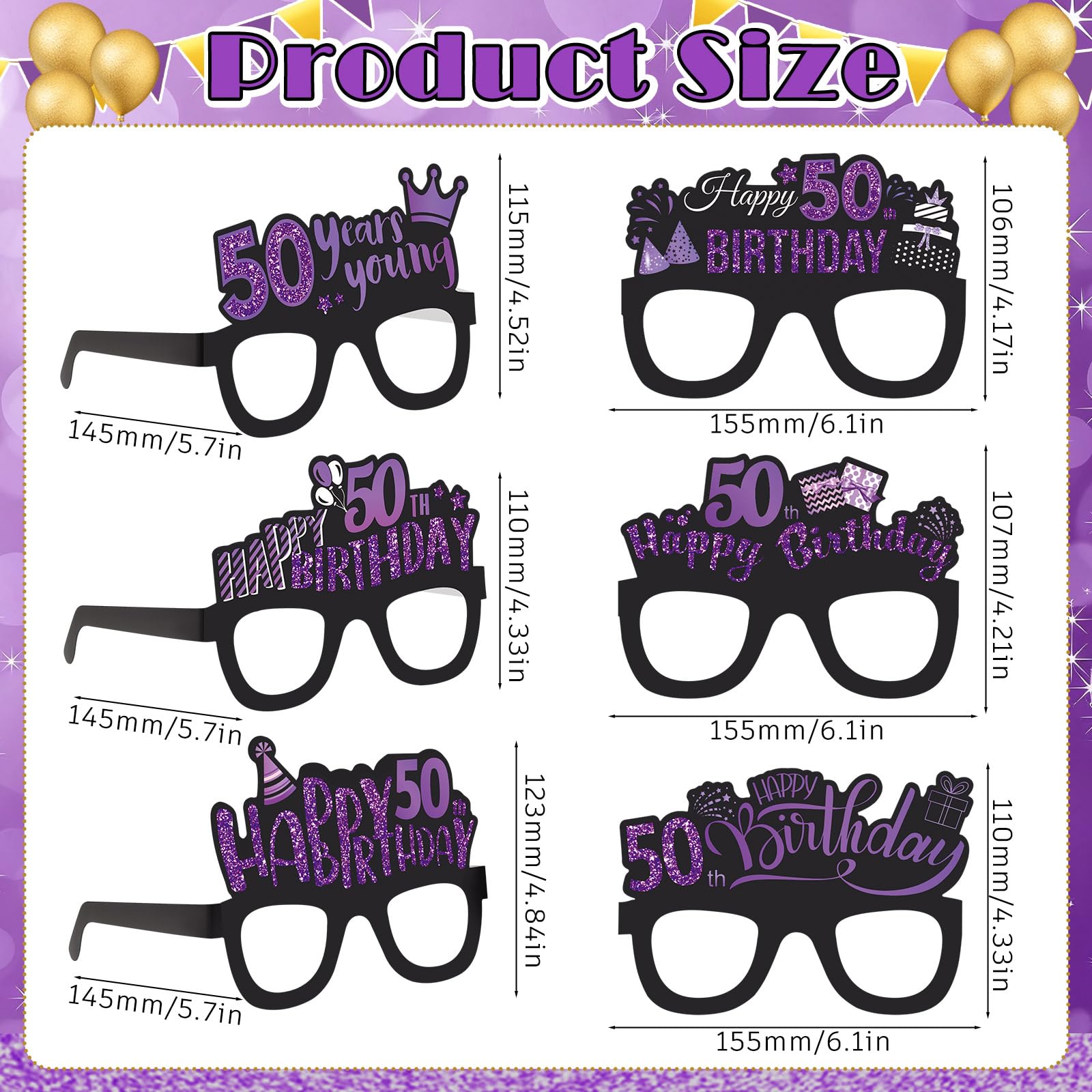 Eye-catching design: black glasses with purple fonts are modern, the novel and cute shapes can quickly attract people's attention; Wearing these trendy glasses at your 50th birthday party will definitely leave you an unforgettable memory; This is definitely a wonderful birthday gift and a nice decoration
