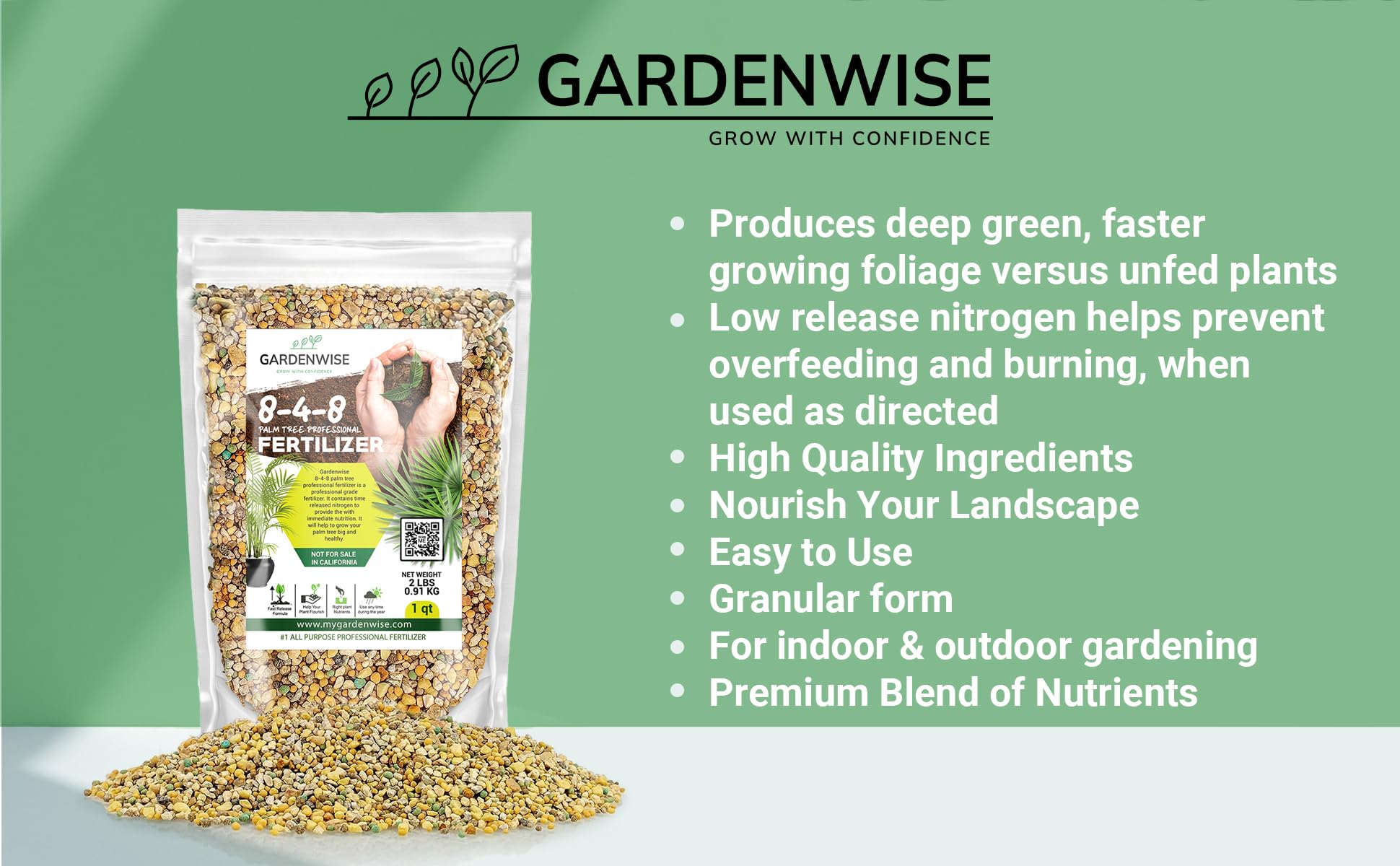 🌴 Optimal Nutrition for Palm Trees: With a balance of 8% nitrogen, 4% phosphorus and 8% potassium, Gardenwise’s robust 8-4-8 fertilizer expertly nourishes your palm trees! Enjoy new, vibrant and plush plume growth, creating a tropical paradise canopy!