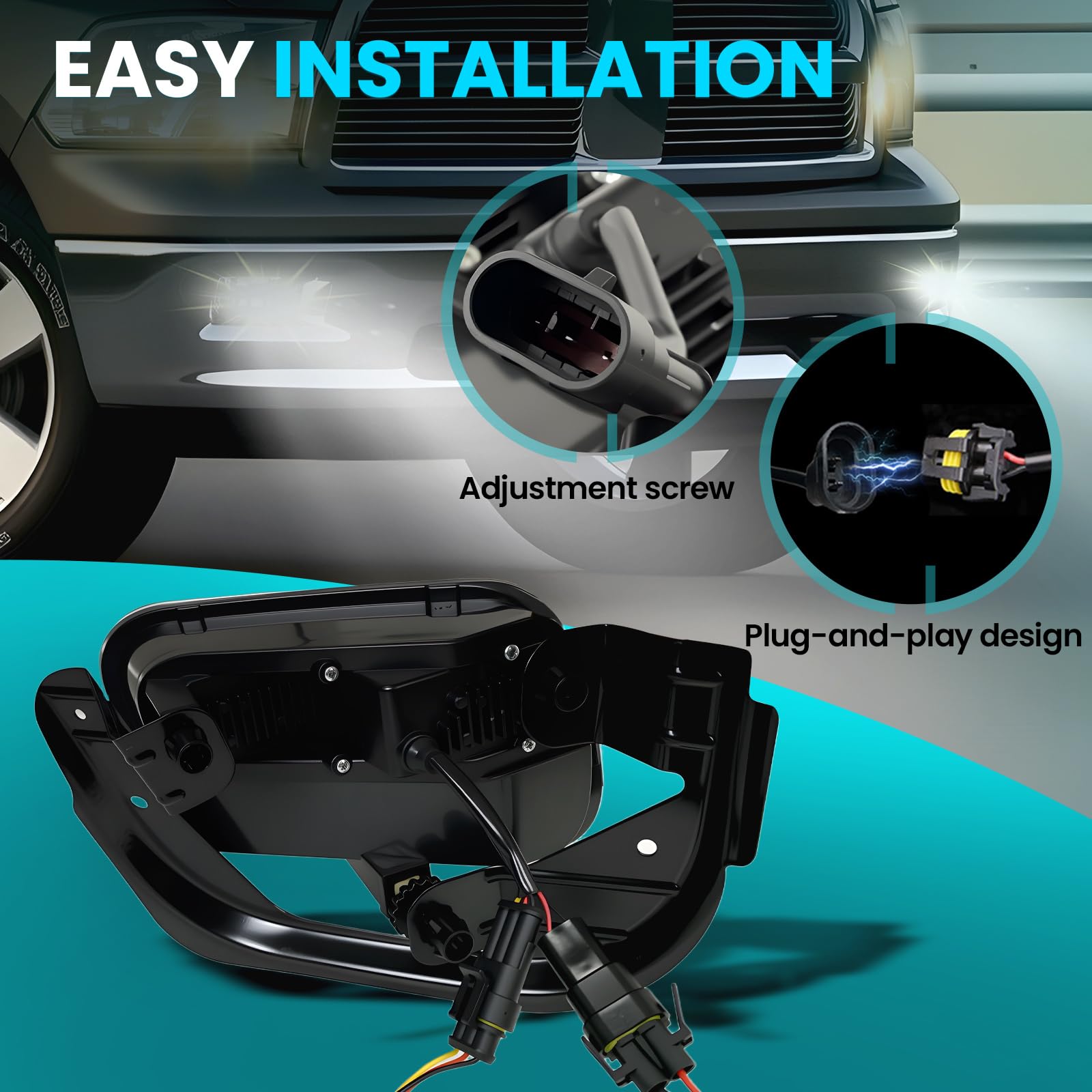 【Package Listing】1 Pair of Fog Lights (Driver and Passenger Side), One DRL Wiring Harness Included.