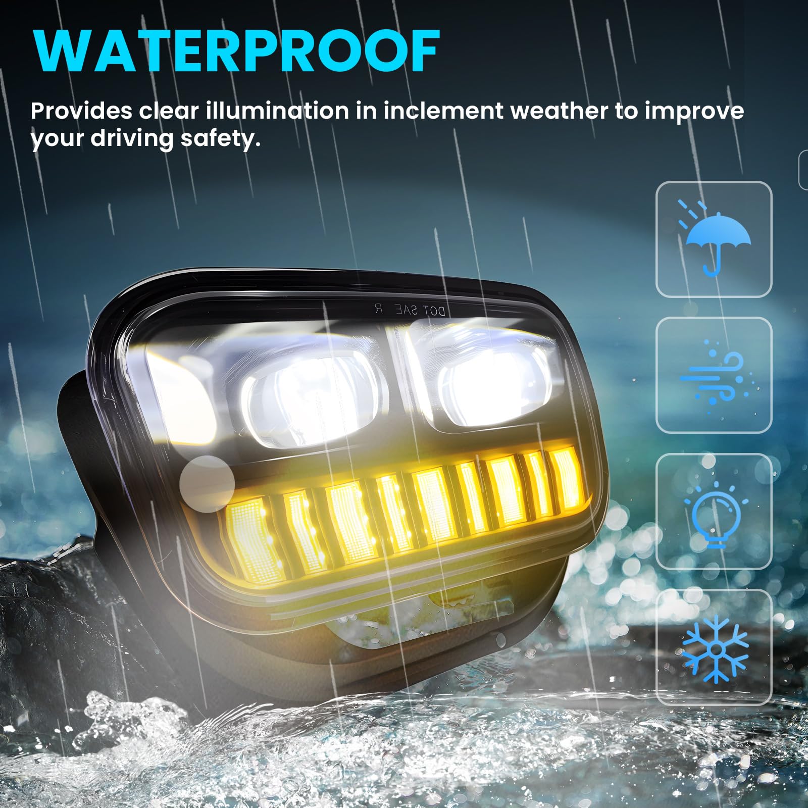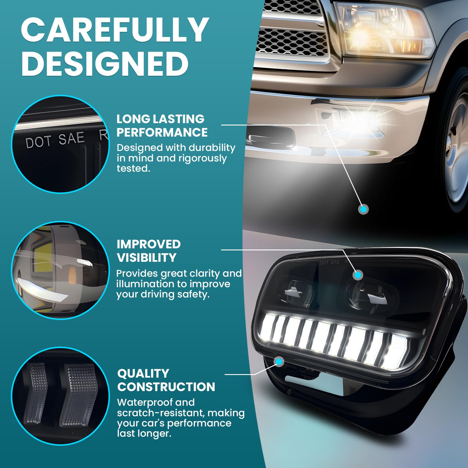 【High-quality】PC lenses,more strong and durable than oem with glass lenses or other passing lamps. Fully sealed, IP67 waterproof rate, rustproof and shock-proof. The life-span reaches to 50000hrs.