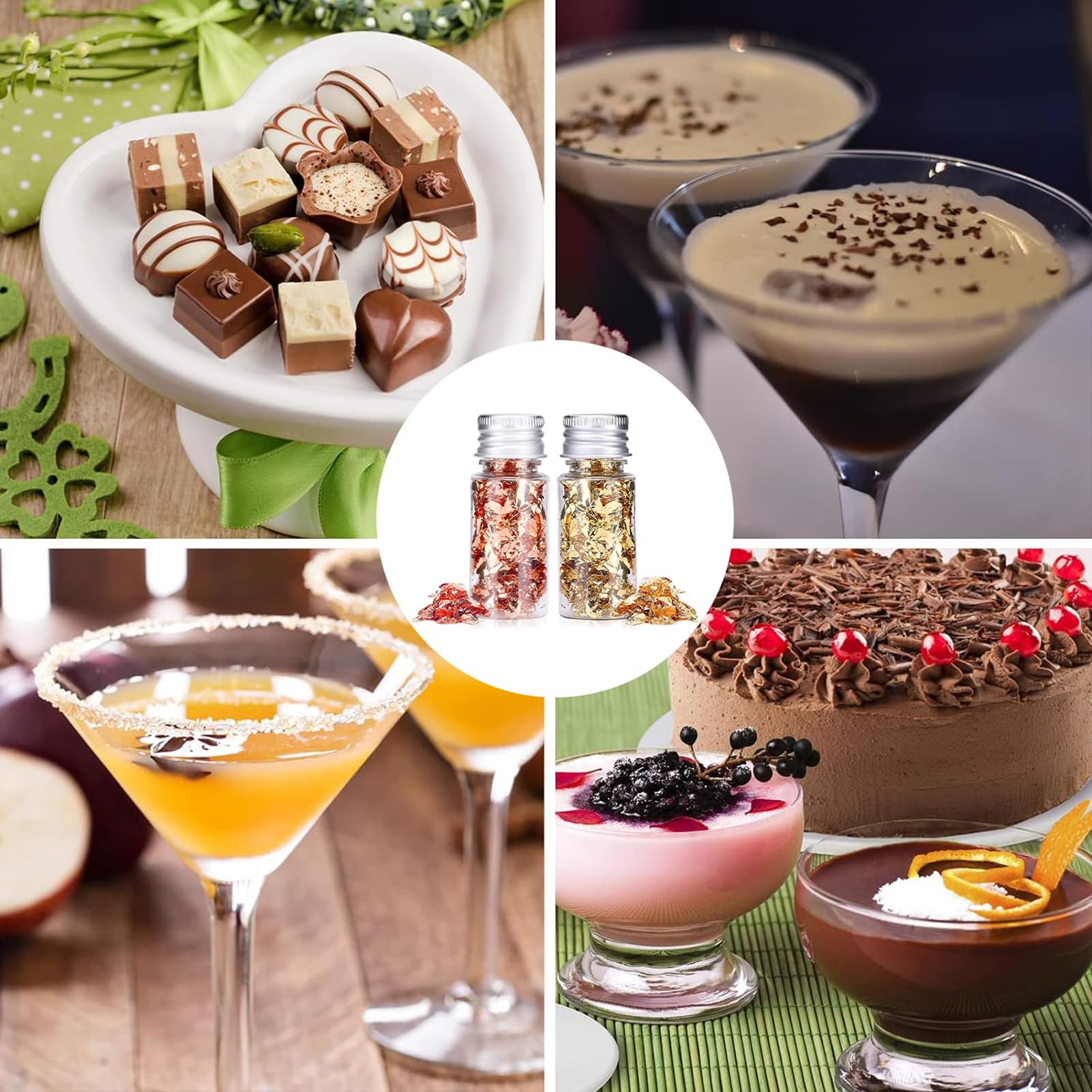 【Edible Gold Foil Flakes Feature 】Gold leaf sheets can create a stunnings sparkling effect that will make your food look absolutely special! The glittering imitation copper foil will make your house had an air of luxury.