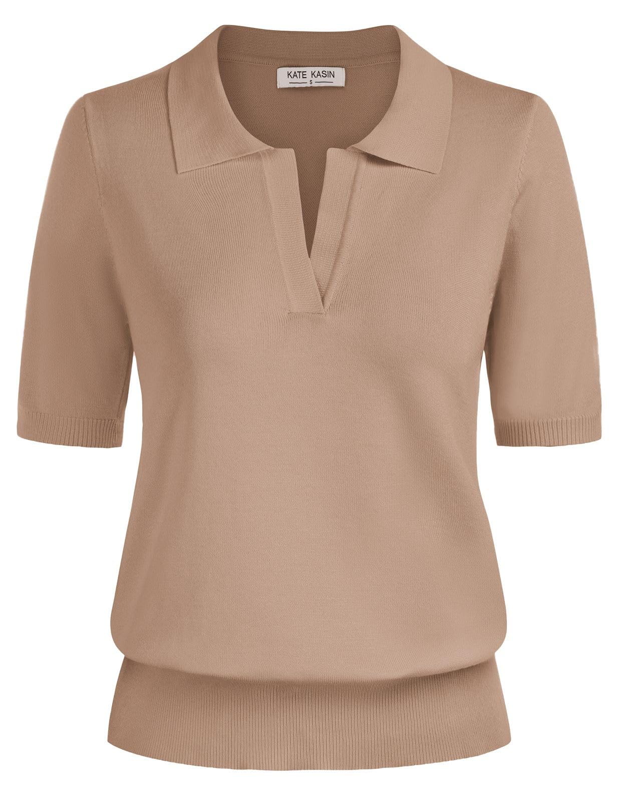 Features: V-neck short-sleeved, loose, casual, ribbed knit pullover. The classic lapel sweater never goes out of style