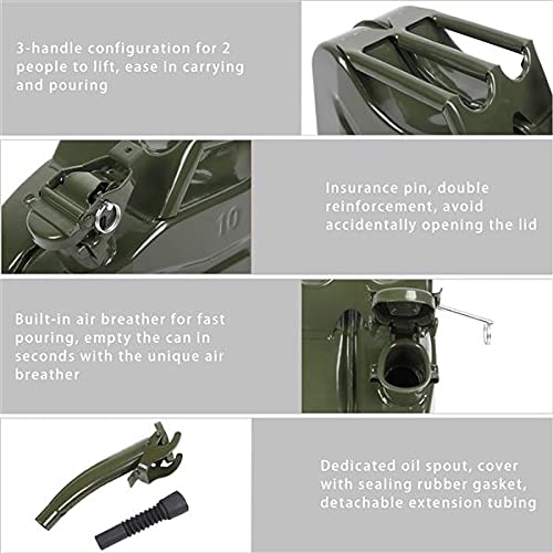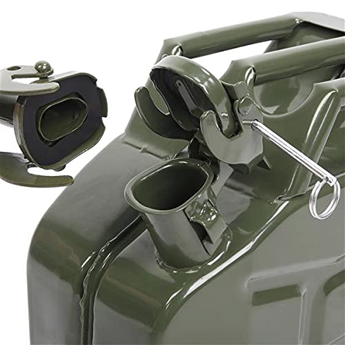 Specifications Material: 0.8mm Cold-Rolled Steel Capacity: 5.3 Gallons / 20L Color: Red Weight: 6.4 lbs Dimensions: 6.9"L x 14.17"W x 18.7"H Package Contents 1 x 2.5 Gallon Jerry 1 x Spout 1 x Instruction Manual