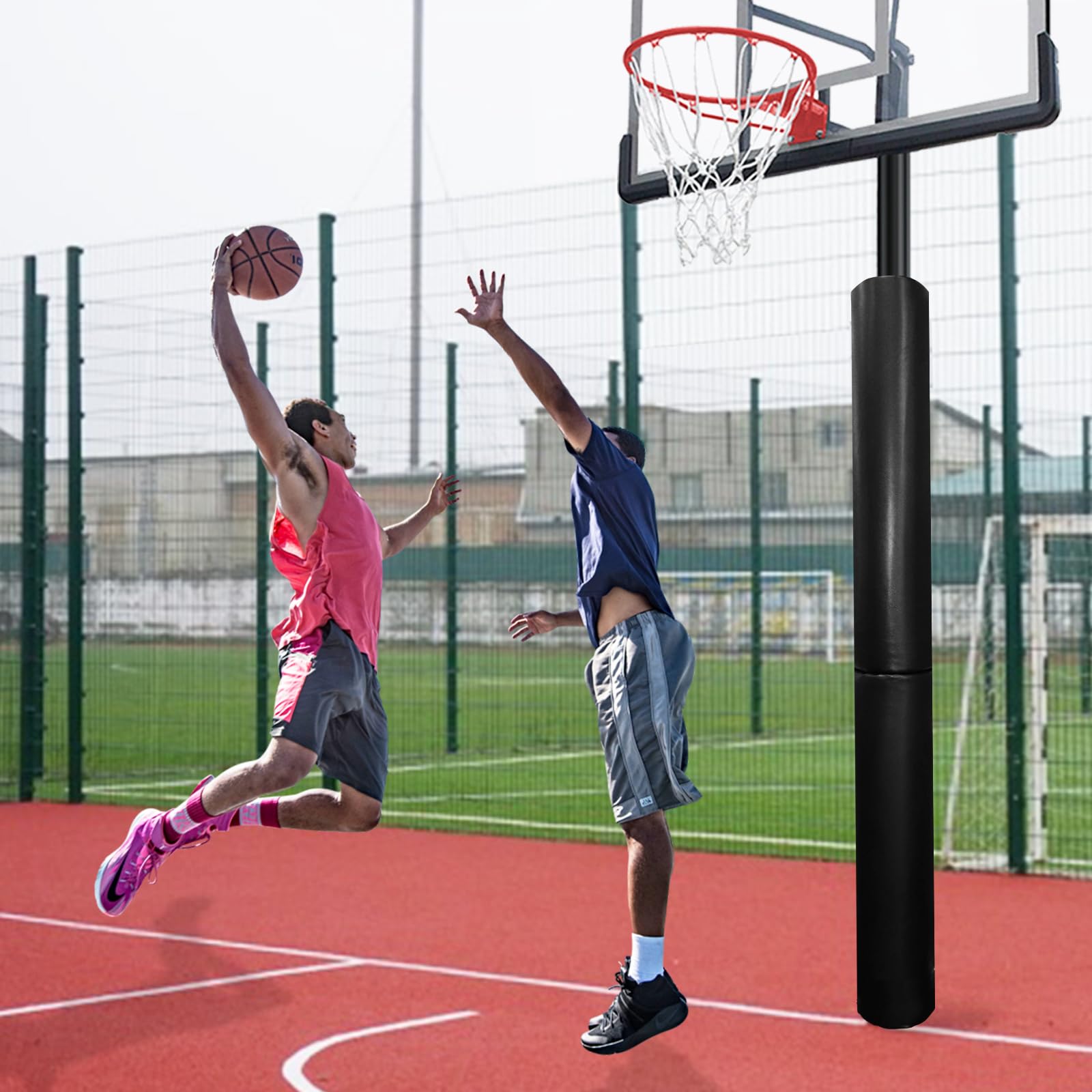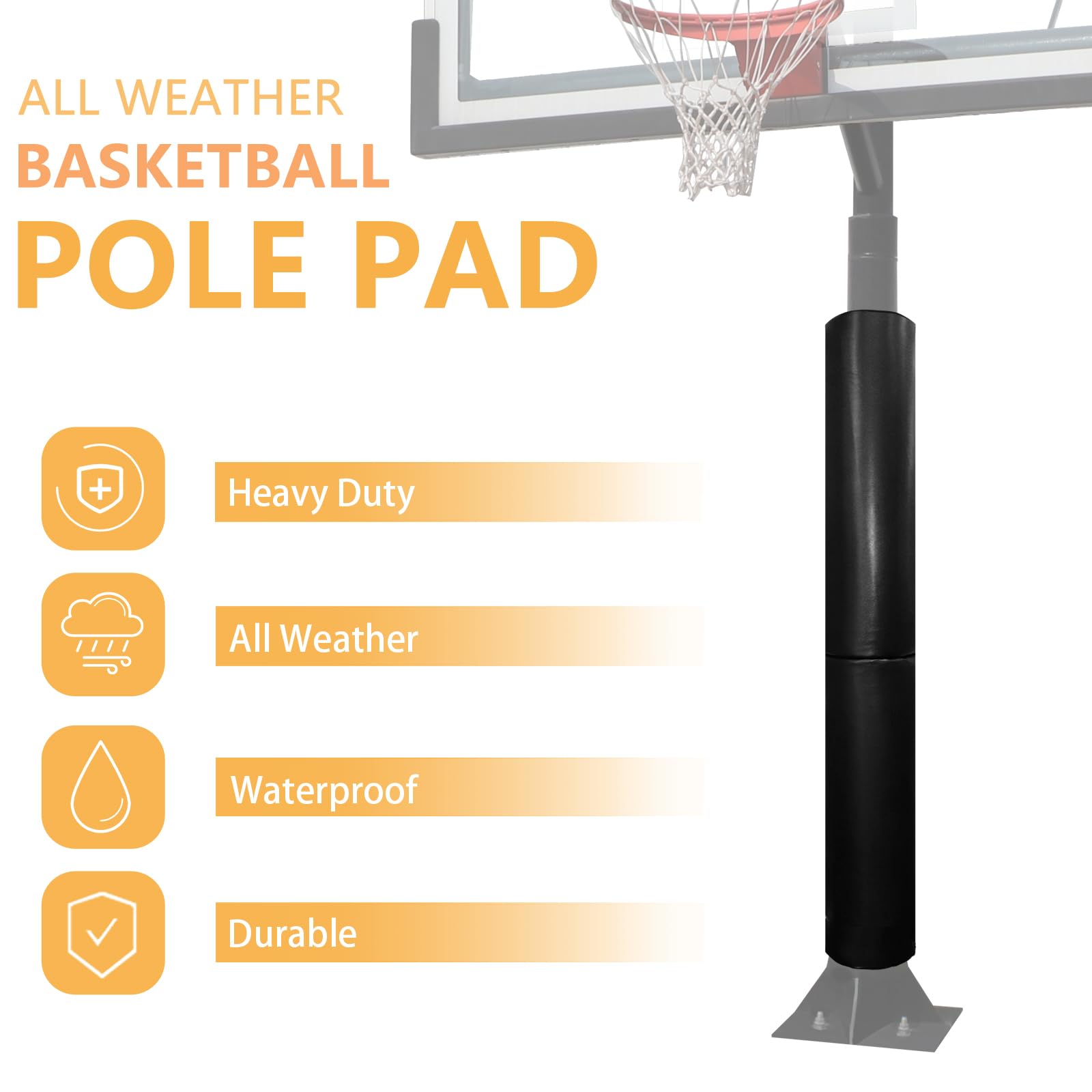 PLAYER PROTECTION — Basketball pole pad provides protection and safety for players during aggressive, rough play.