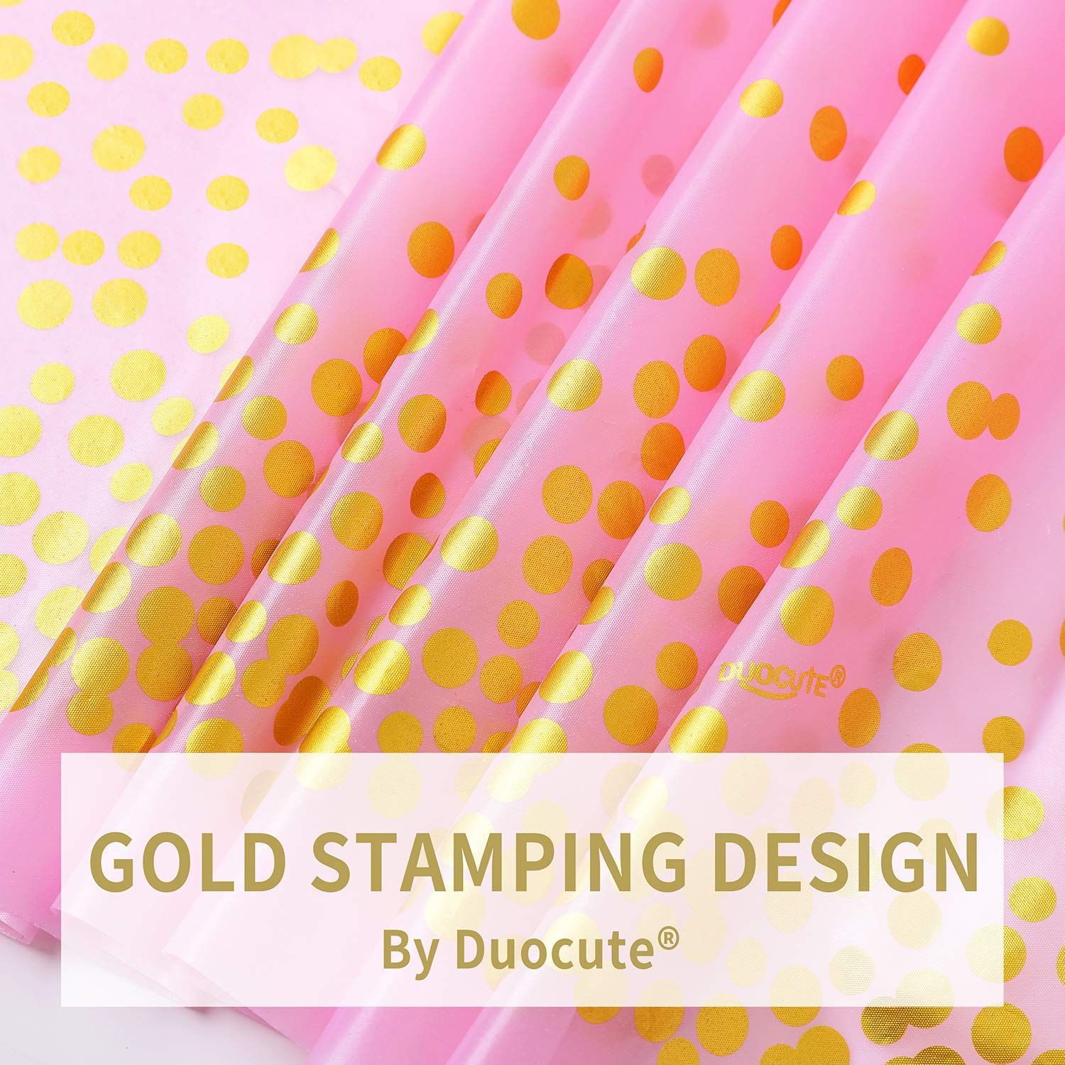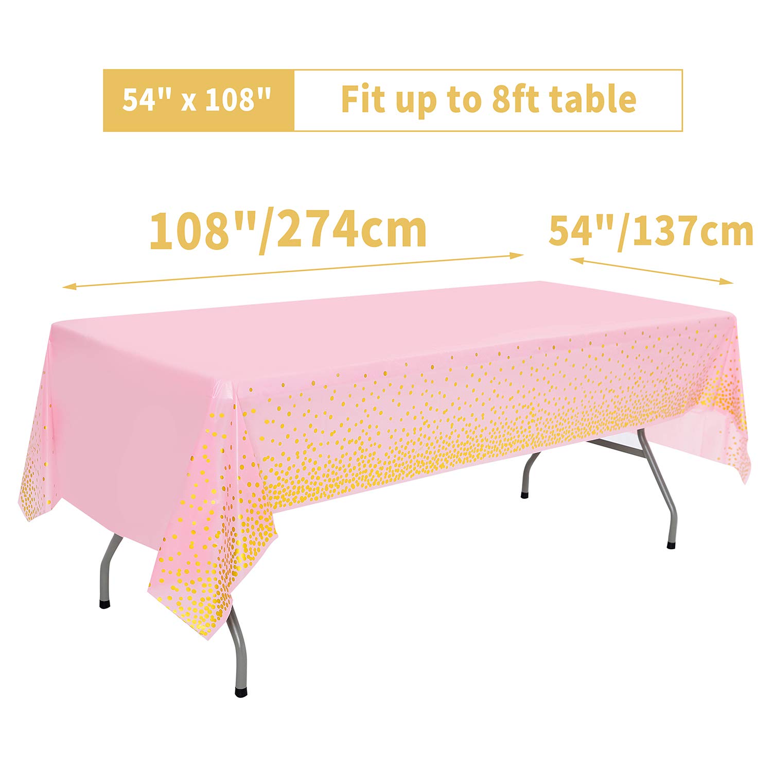 PINK GOLD FOIL DOT DESIGN: This pink and gold dot tablecloth is designed to pink background and golden foil polka dot pattern. The tablecloth is all enhanced with attractive golden foil dot. Adding an elegant, modern touch to any party. Perfect choice for a pink and golden themed party.