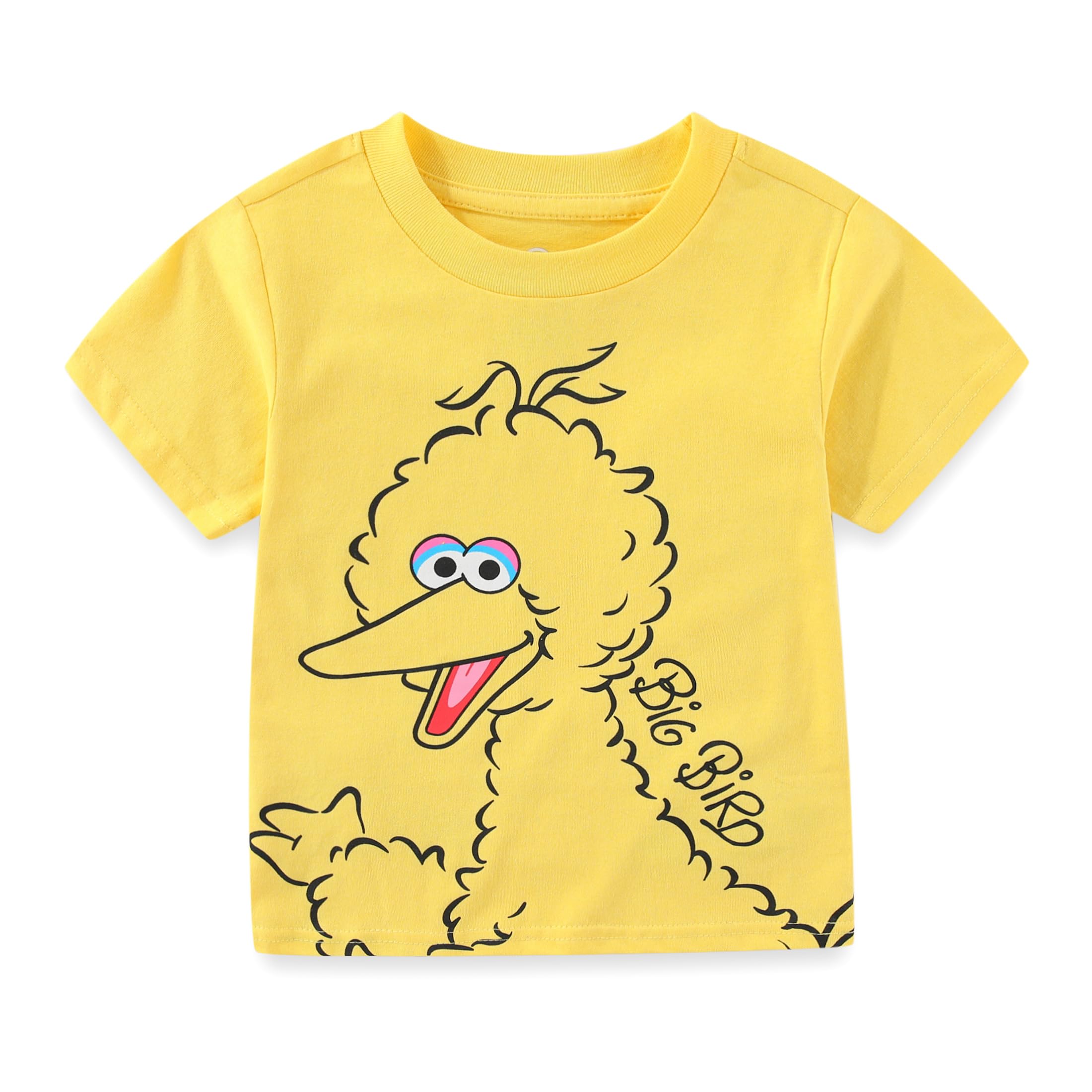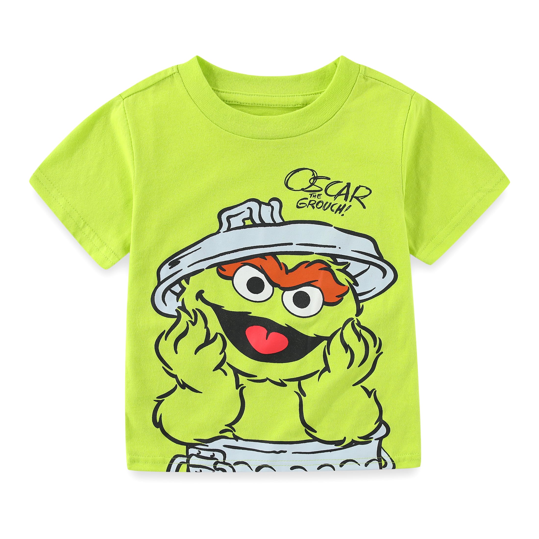 Contains One Cool Sesame Street Big Bird Print Tee, One Stylish Cookie Monster Print T-Shirt, One Comfy Oscar the Grouch Print Green T-Shirt and One Pretty Sesame Street Elmo Print Red Tee