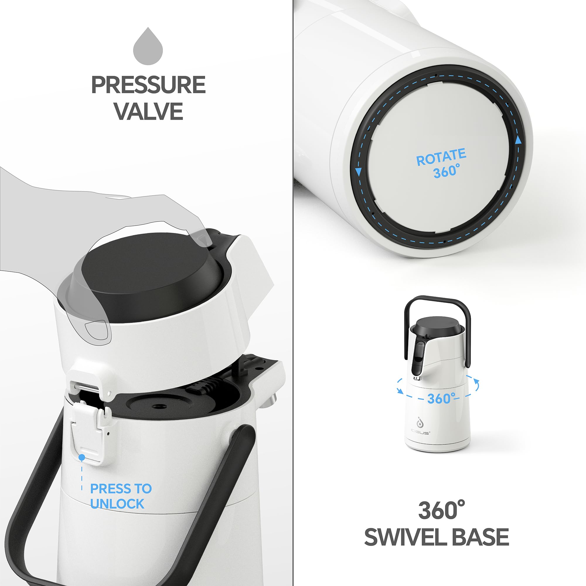 Large Capacity - The structure of the coffee carafe is sturdy, could be used for a long period of time. Our thermal beverage dispenser has an ample capacity of 74oz ( 2,200 ml ). Enough for close to 15-16 cups of beverage.