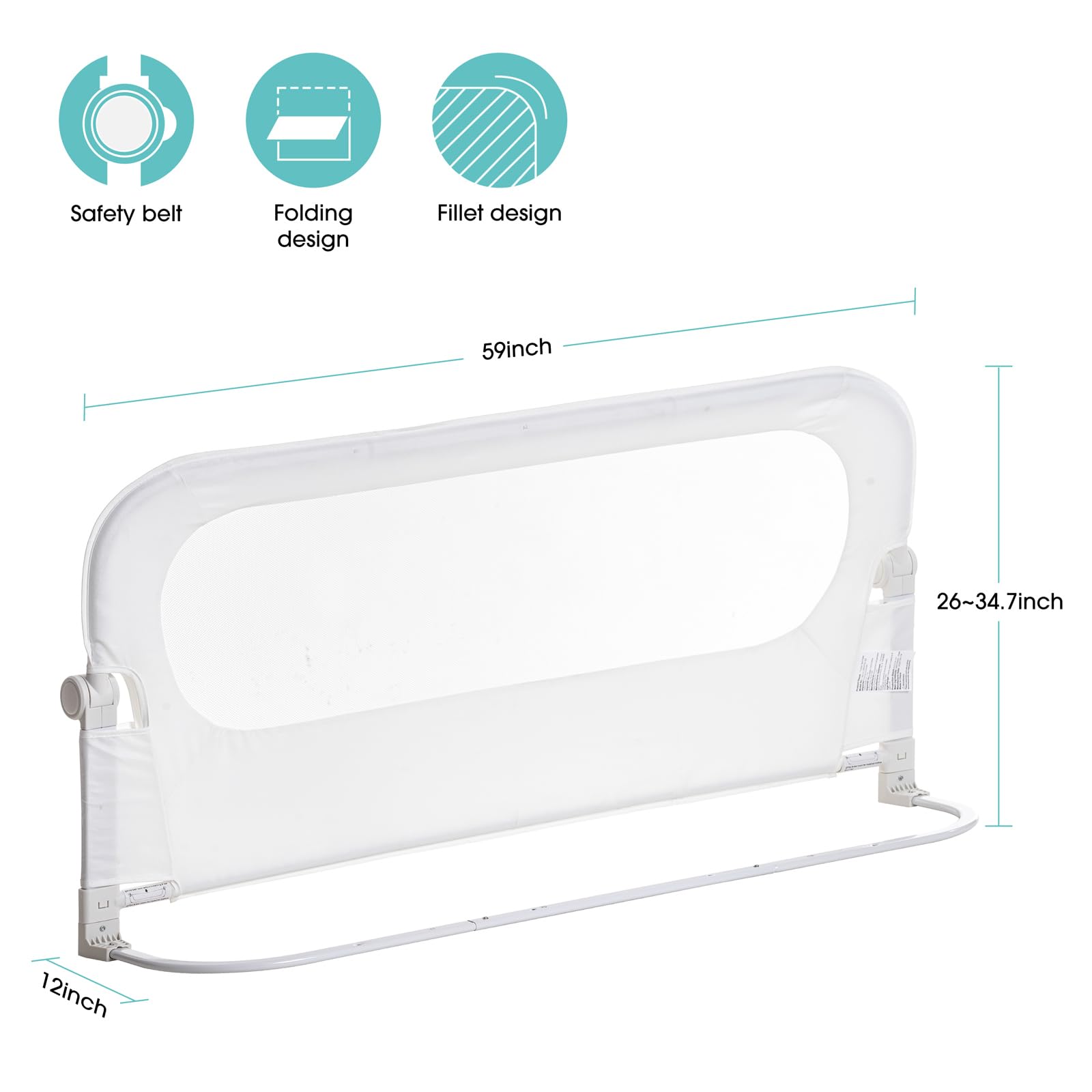 NUTIKAS Baby Bed Rail Guard for Toddlers -59" Toddler Bed Rails for Twin, Full, Queen, King Bunk Size Bed Swing Down Bedrail Extral Tall Child Safety Side Railing Guards for Kids White