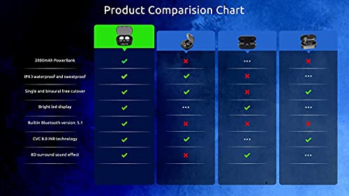 ⚡【COOL LED SCREEN】 : Simple, Easy to Read Bluetooth LED display will clearly show the accurate power level of the charging box and the earphone, this way you can better arrange the future management of the headset, and will not worry about the earplugs without power/electricity.