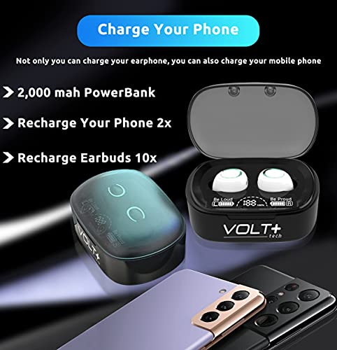 ⚡【WHAT DO YOU GET?】: You will get a Portable Bluetooth Volt Plus Tech Version TWS earphone with a Power Bank/Pack Storage Digital Display box, and the case that can re-charge for 36 Hours on the headset/earphones at any time, making travel and sports more exciting. Can be used as a gift for your family and friends.