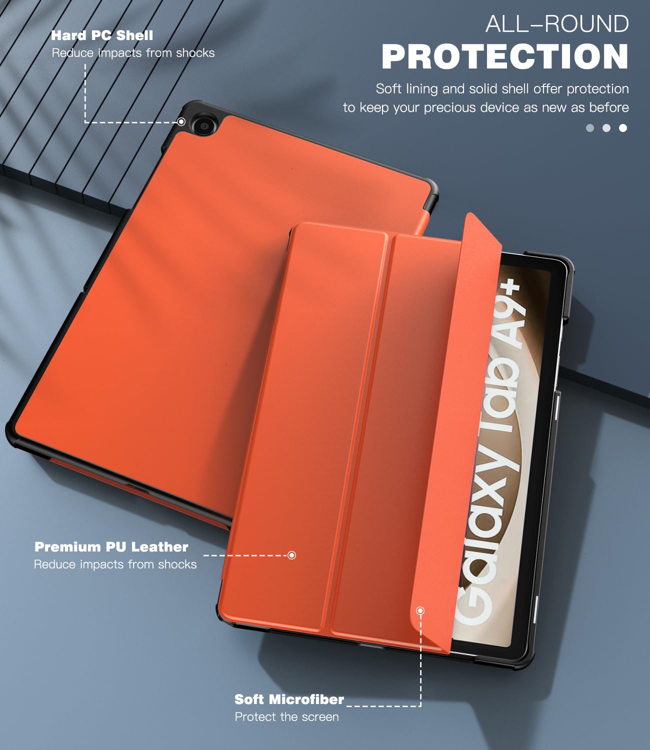 Premium Material: This Samsung A9 Plus Tablet Case is made of premium PU leather exterior, soft microfiber interior lining, and back hard PC cover design protect your tablet against the bumps and scratches of everyday life