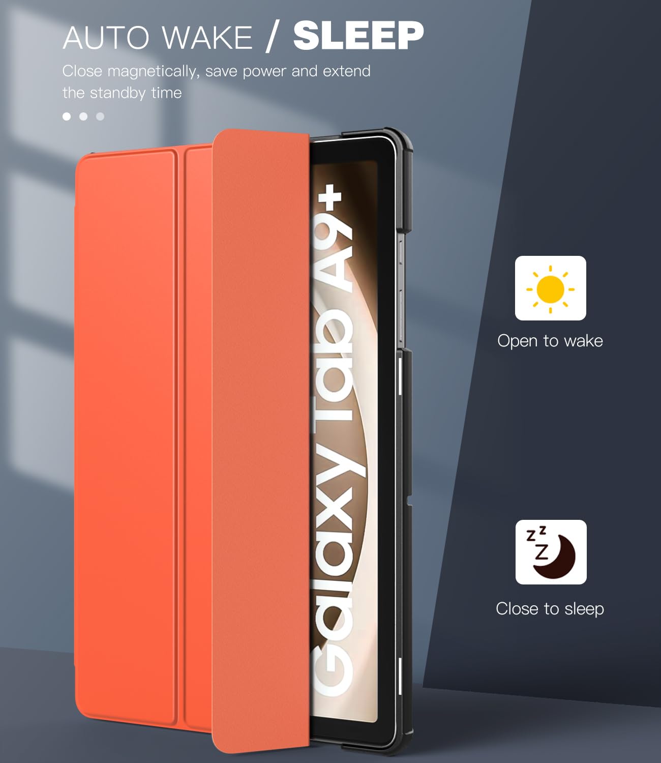 Auto Wake/Sleep: Magnetic cover provides auto sleep/wake feature. Save much power for your tablet so that reduce charging frequency. Slim and lightweight design will not increase the bulk of your tablet, easy to snap on and off