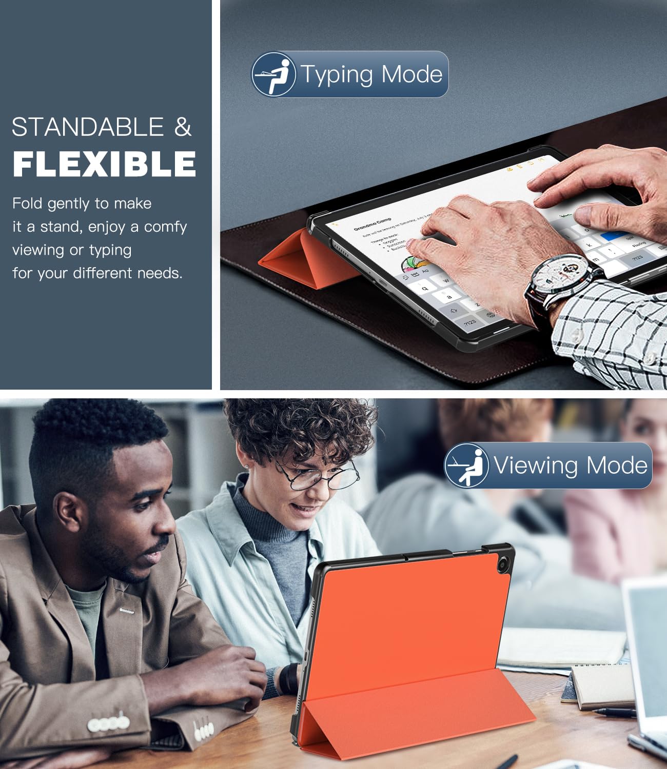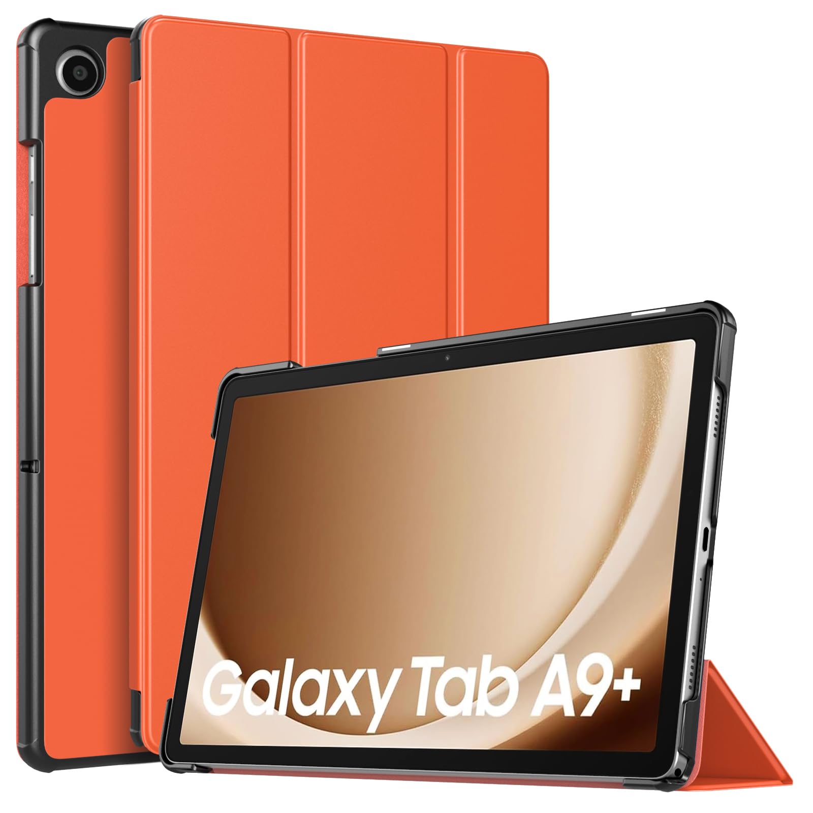 Adjustable Stand Angles: The top of this Galaxy Tab A9 Plus Case folds back to make a stand, which provides a sturdy stand position for both viewing and typing. Free your hands when watching, reading, or writing, a good way to alleviate neck strain
