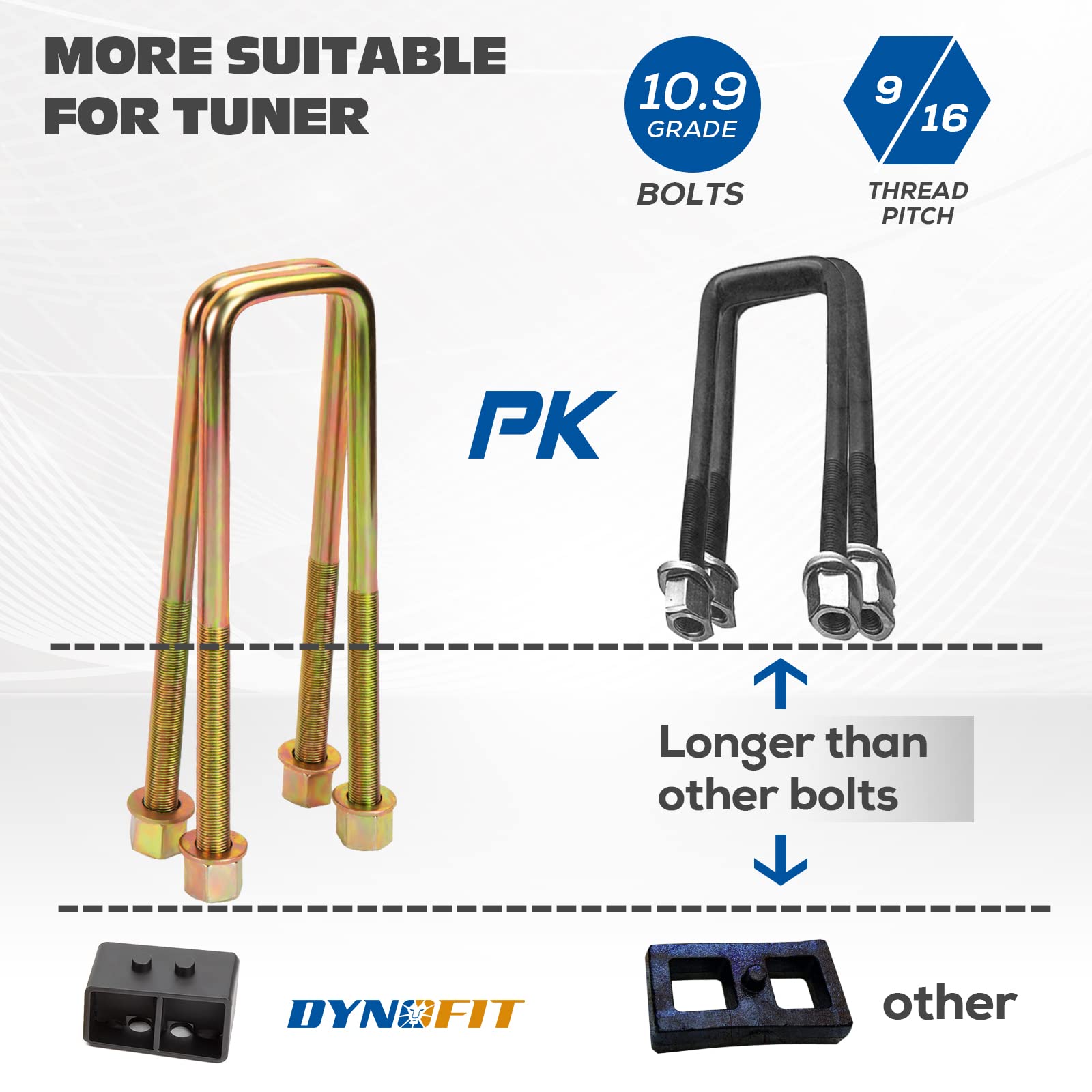 High Performance U-Bolts: The leaf springs U bolts are longer than original bolts, featuring 10.9 grade bolts with 9/16 inch-18 thread pitch and thicker washer, made of CNC machined steel with strong compression strength