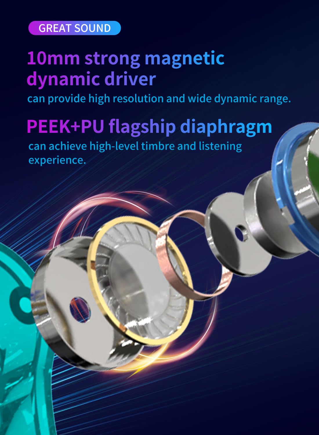 Most Musicians’Choice: Kbear Storm in ear monitor headphones adopts 10mm strong magnetic dynamic driver&PEEK+PU composite diaphragm.10mm strong magnetic dynamic driver can provide high resolution and wide dynamic range.PEEK+PU flagship diaphragm can achieve high-level timbre and listening experience.Let you get an excellent experience in the ocean of music.
