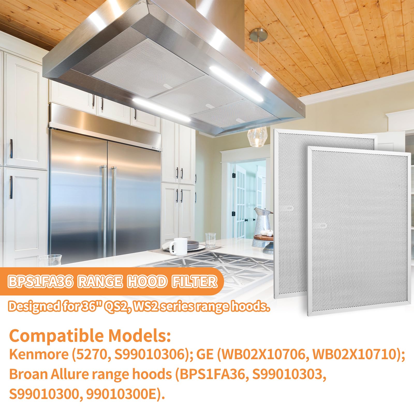 REPLACEMENT VENT FILTER: Works with B-roan Nutone allure 36"-WS1 & QS1 & WS2 SEARS 5260 - 36" series range hoods BPS1FA36, S99010303 S99010300 99010300E WB02X10706 WB02X10710 AP5613213 and other range hood filters are compatible