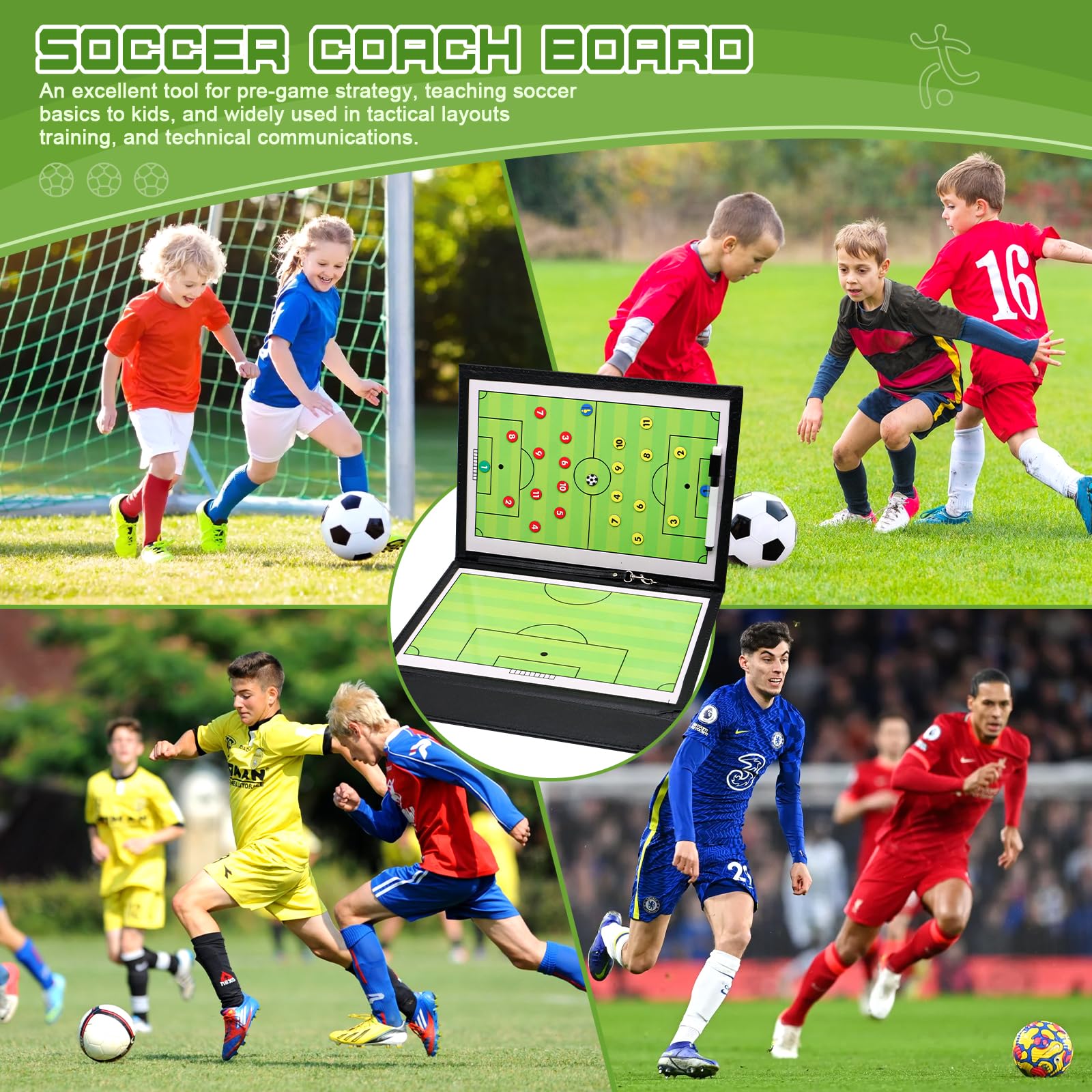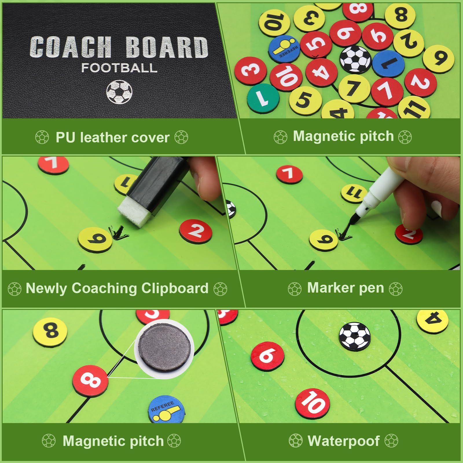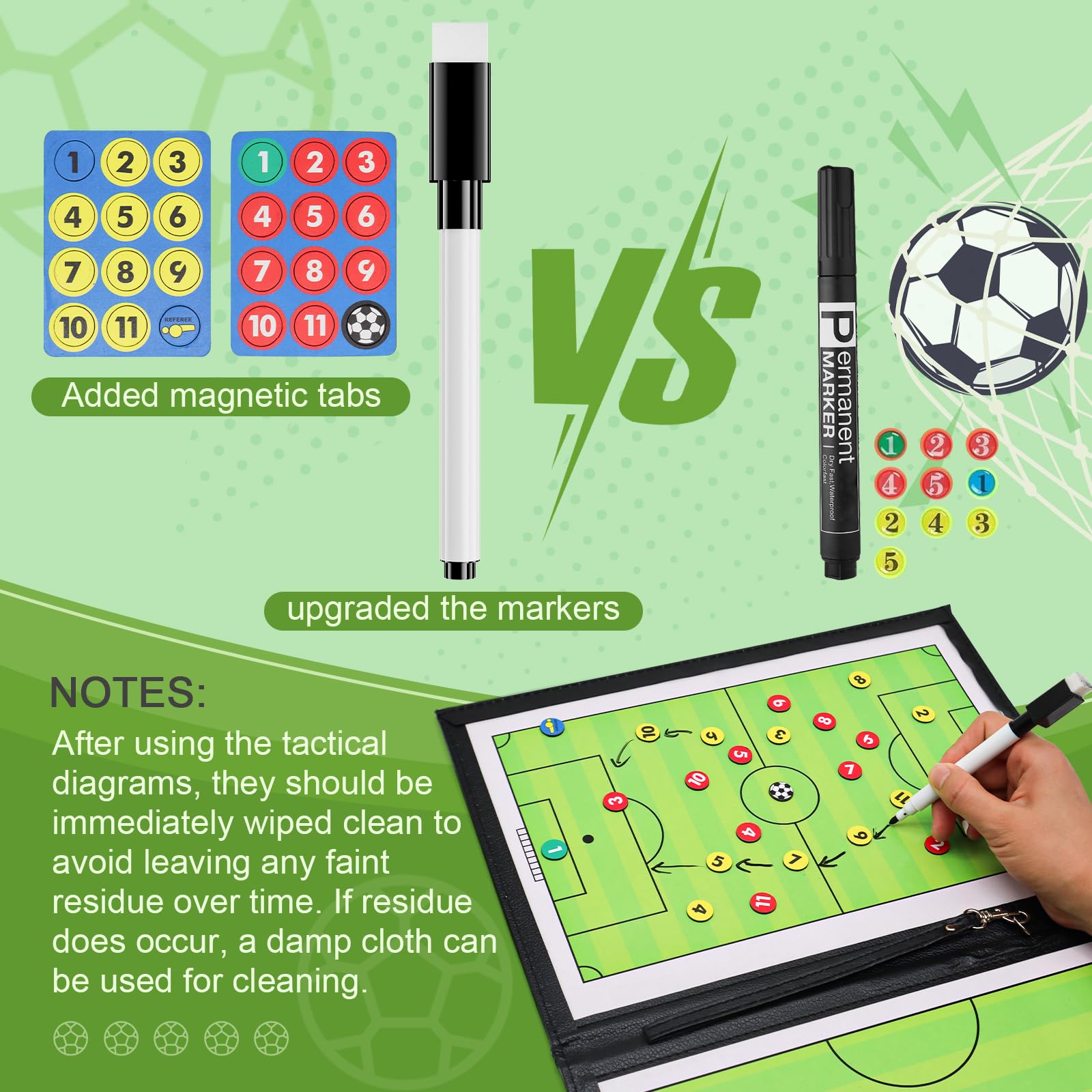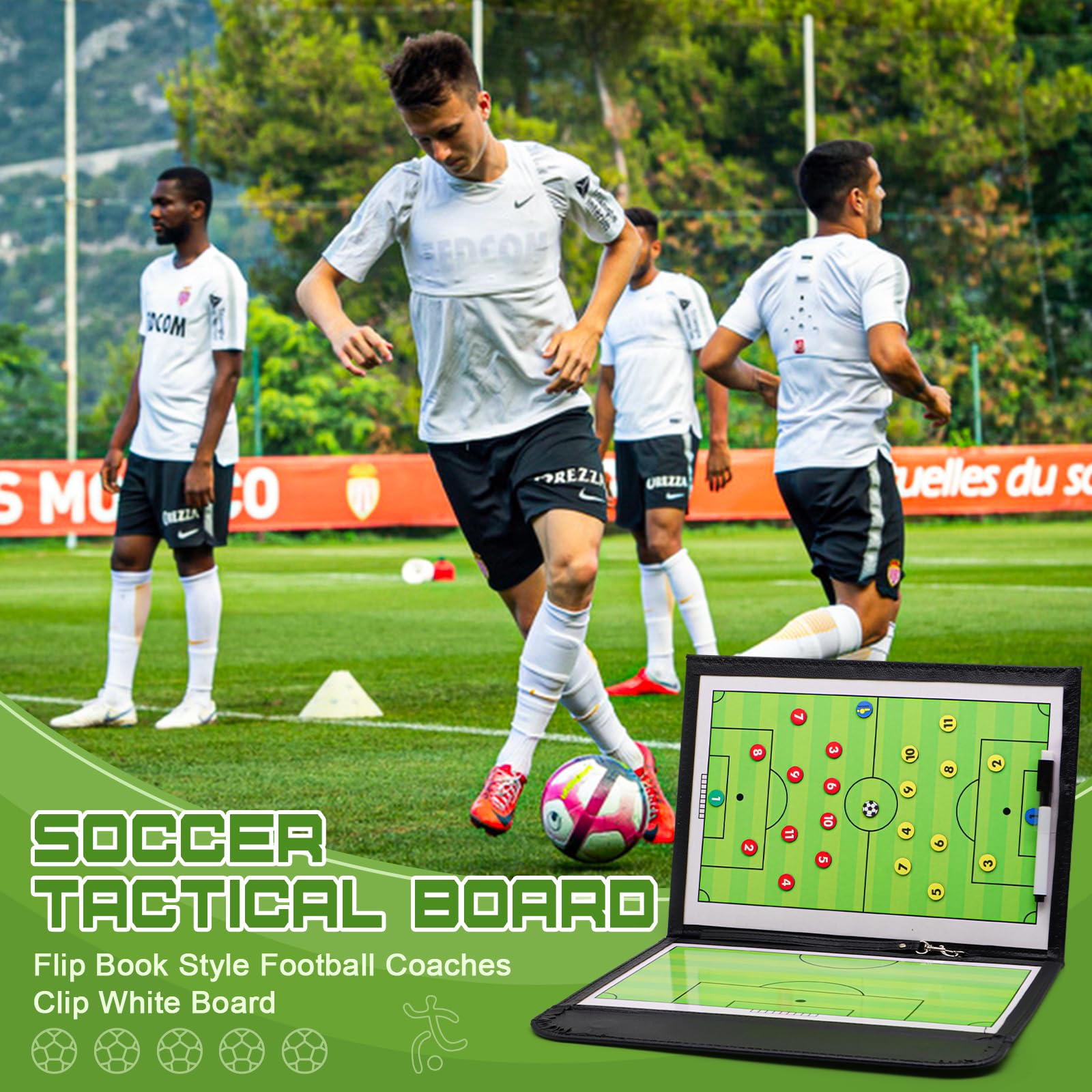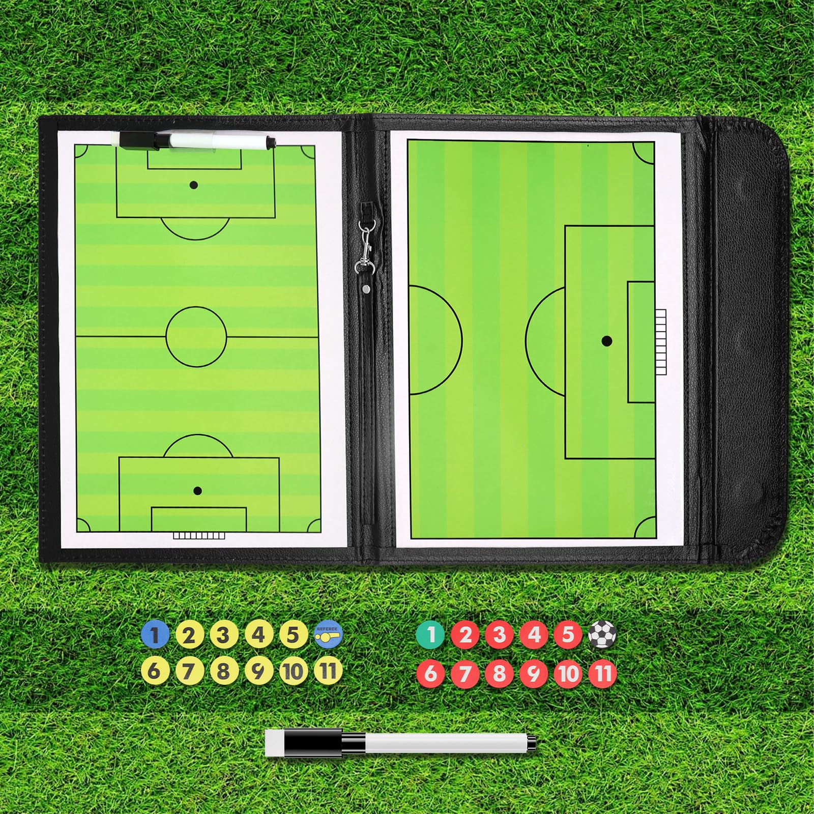 Premium Soccer Coaching Board: Crafted with a sleek PU leather cover and a magnetic pitch, this tactical folder offers superior durability and style. The included 2-in-1 marker pen ensures clear and vivid markings for effective coaching.