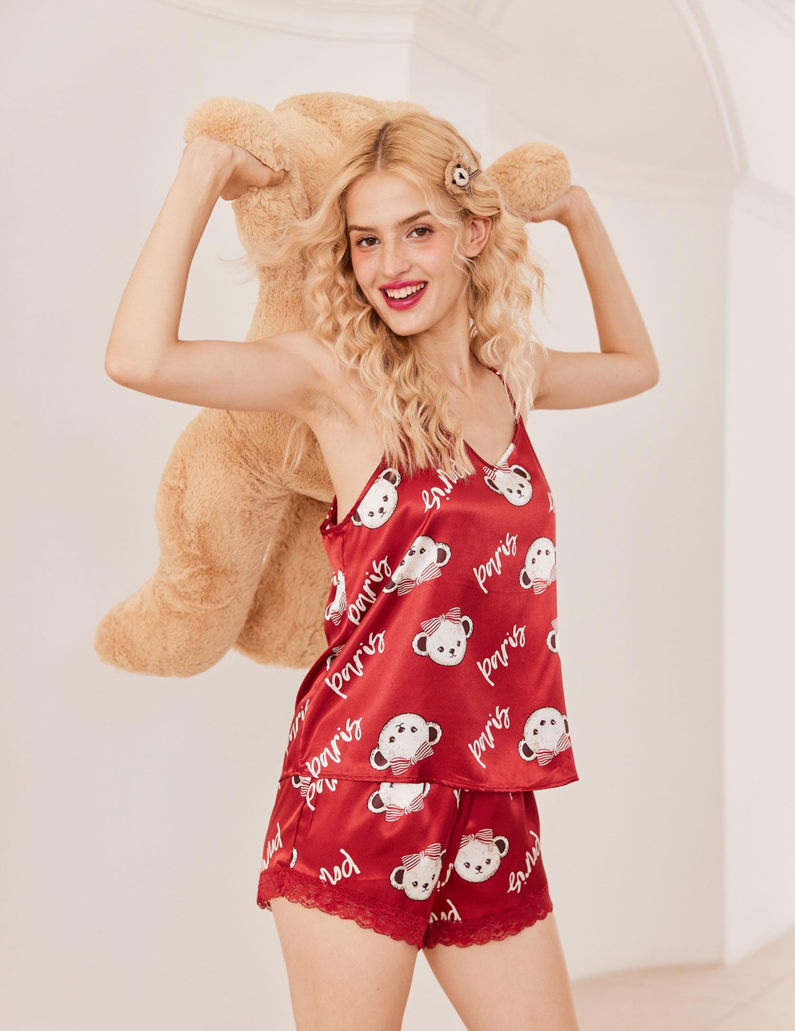SOFT SATIN PAJAMA SET: The sexy pajama set for women is lightweight and loose-fit,very easy to put on and take off, make you cool and comfortable for summer days