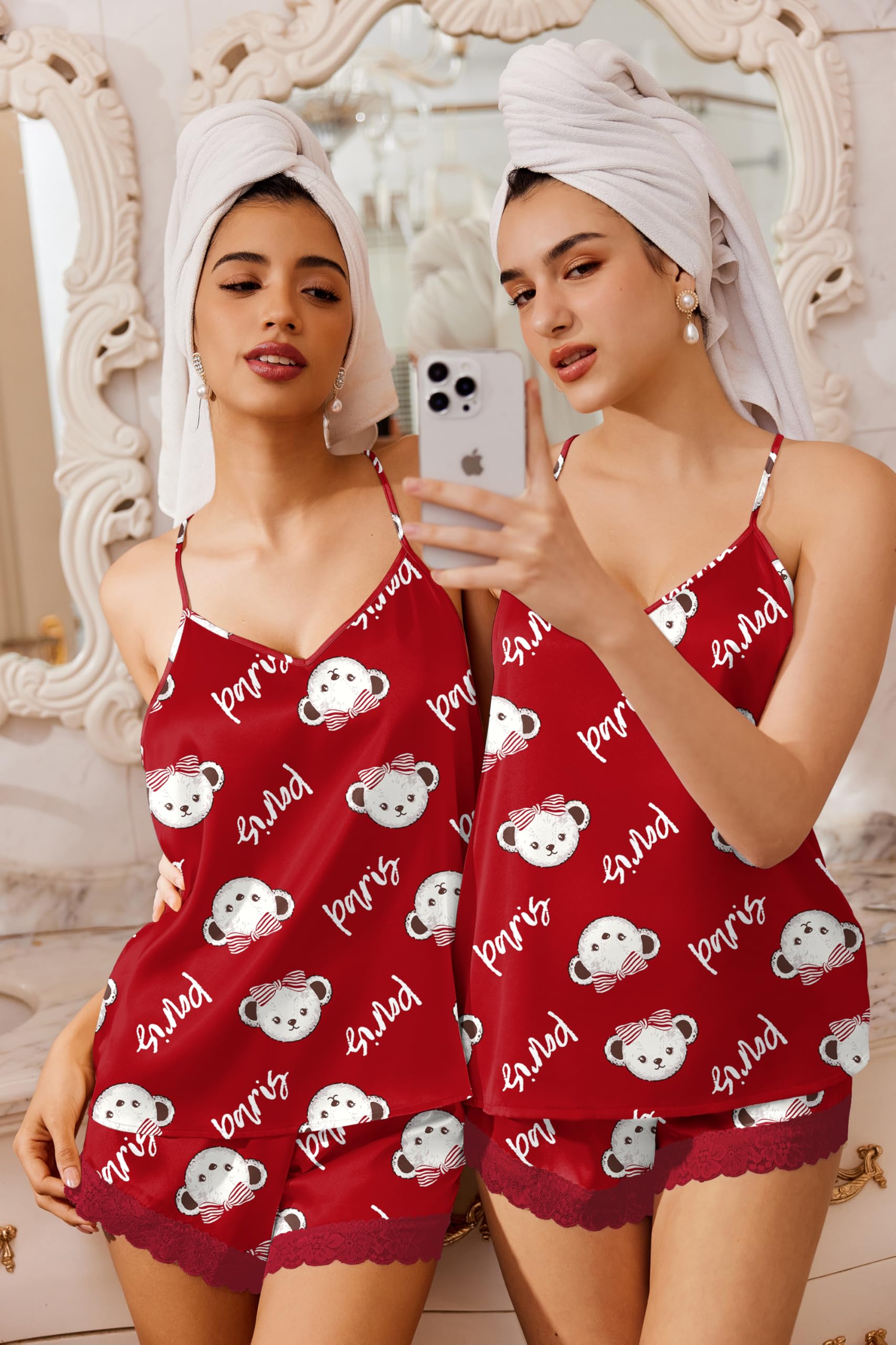 MATERIAL: Ekouaer cami pajama set is made of 95% polyester,high-quality satin fabric give your skin like baby care,ultra-comfortable satin material make you sleep well