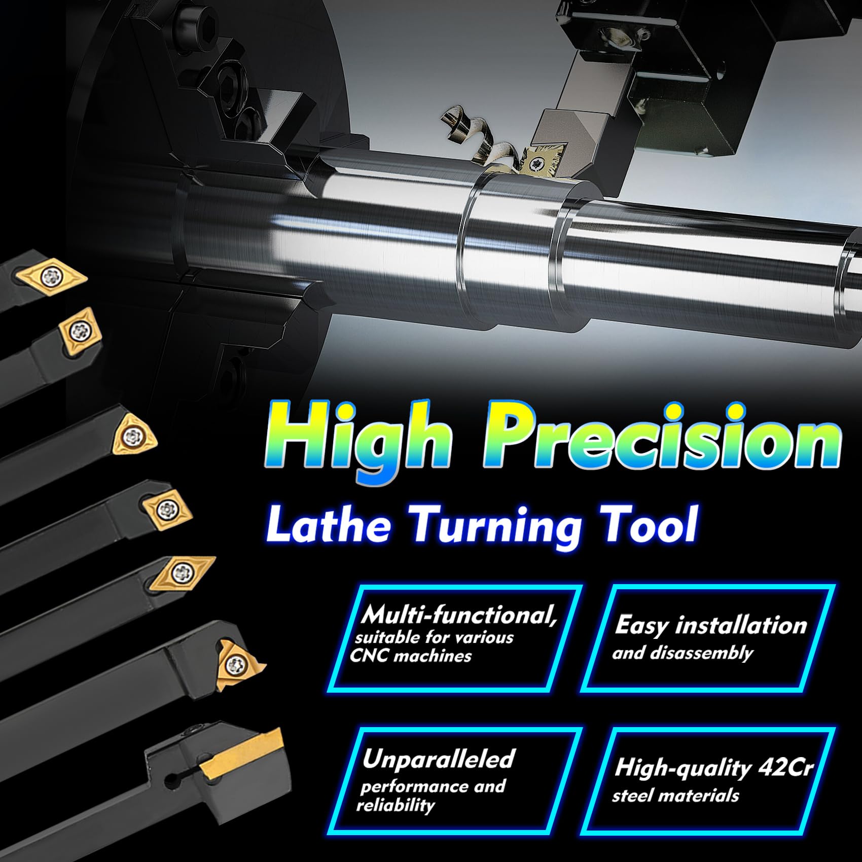 Durable and Customer-Centric: Our shock-proof, user-friendly turning tool holders are designed for your machining success. Enjoy peace of mind with 24h service, a 3-month refund policy, and a 360-day support. Act now and secure yours today