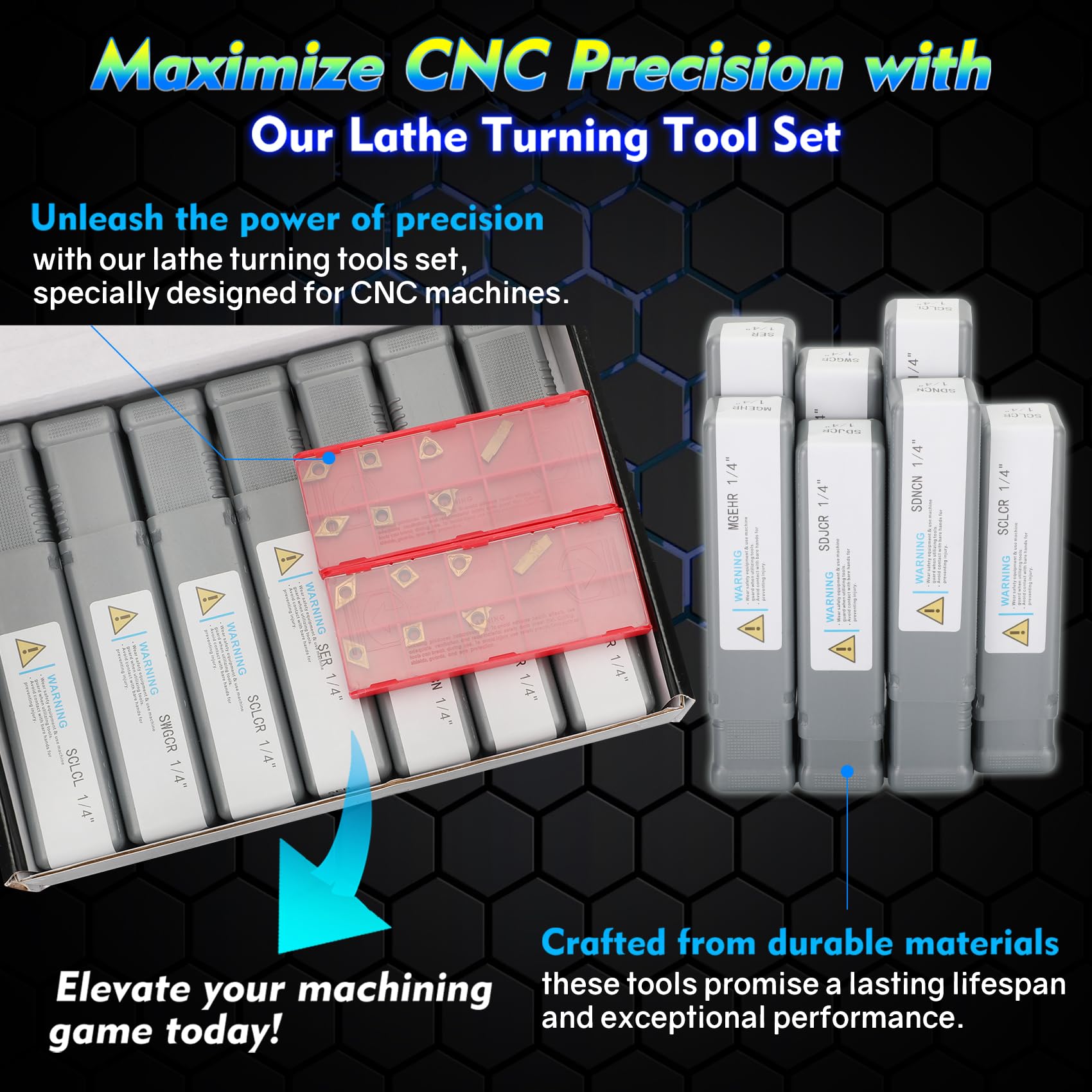 Ultimate Machining Kit: Elevate your precision work with our all-in-one toolkit. Includes 7 essential tools and 14 inserts