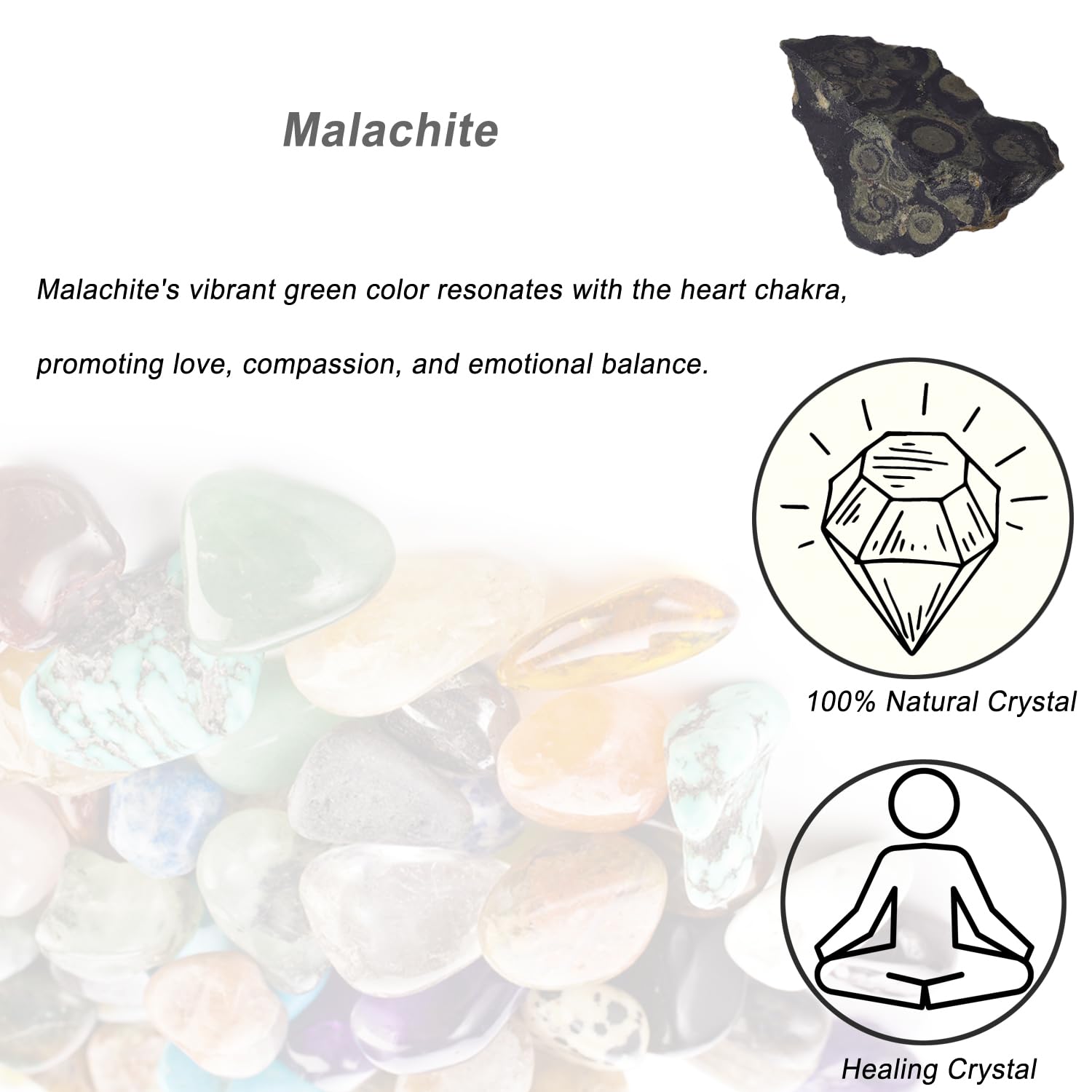 Natural: You will receive 1pcs authentic raw Malachite stone.Malachite's vibrant green color resonates with the heart chakra, promoting love, compassion, and emotional balance