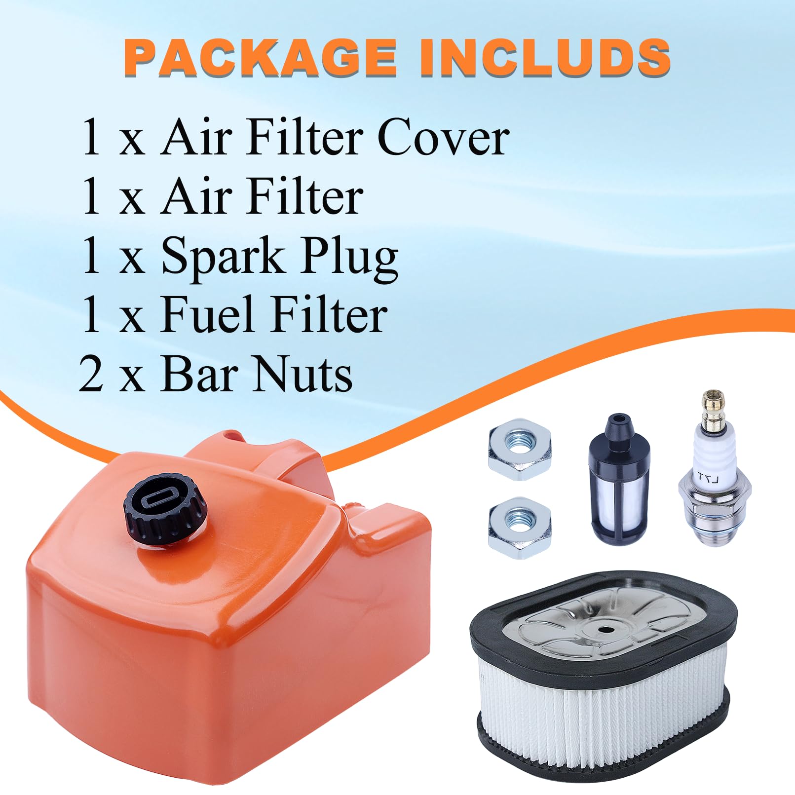 Package Lists: 1 x Air Filter Cover, 1 x Air Filter, 1 x Spark Plug, 1 x Fuel Filter, 2 x Bar Nuts